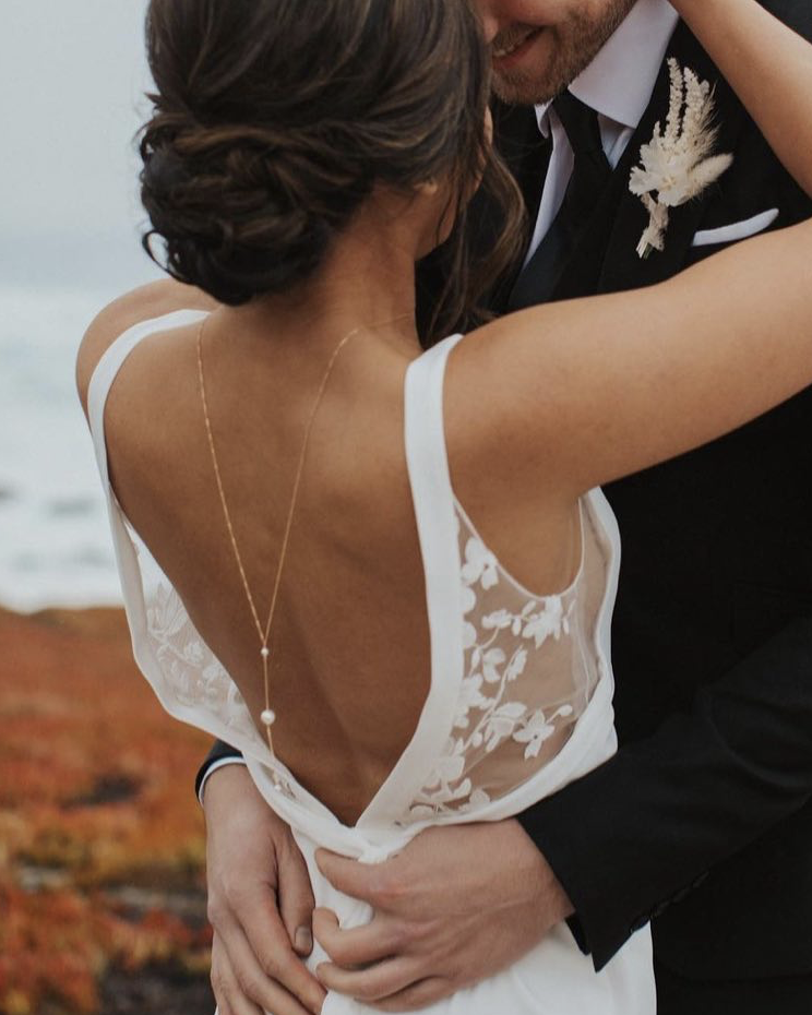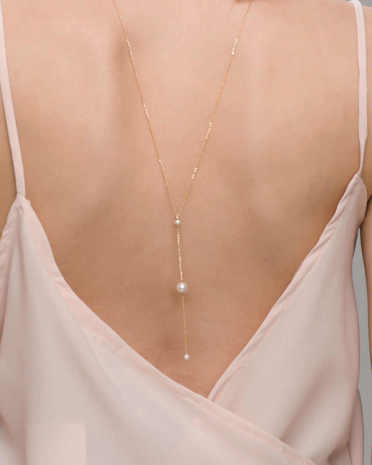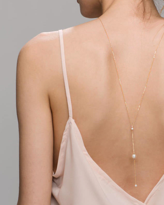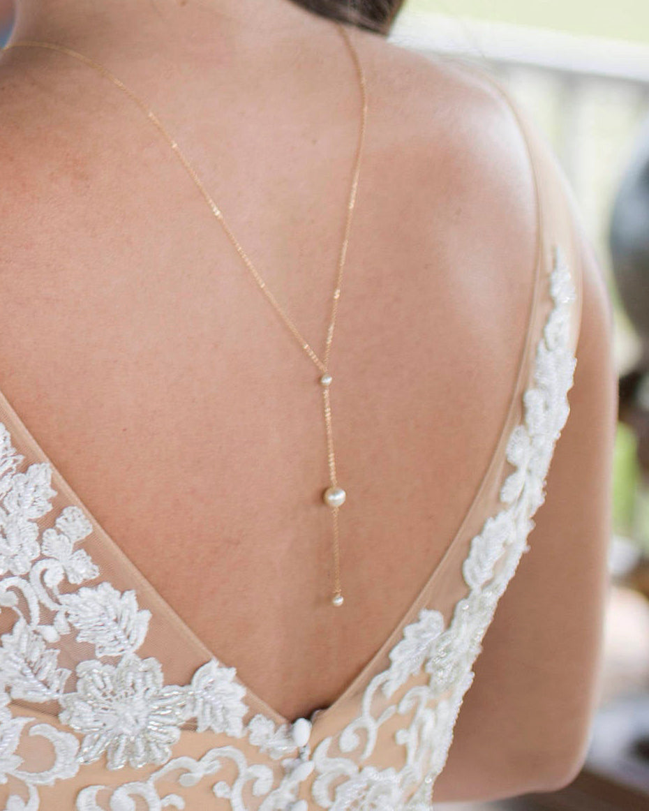 Dainty and Beautiful Back drop Necklace with 3 Pearls for your wedding dress or for any back less dress, low back dress