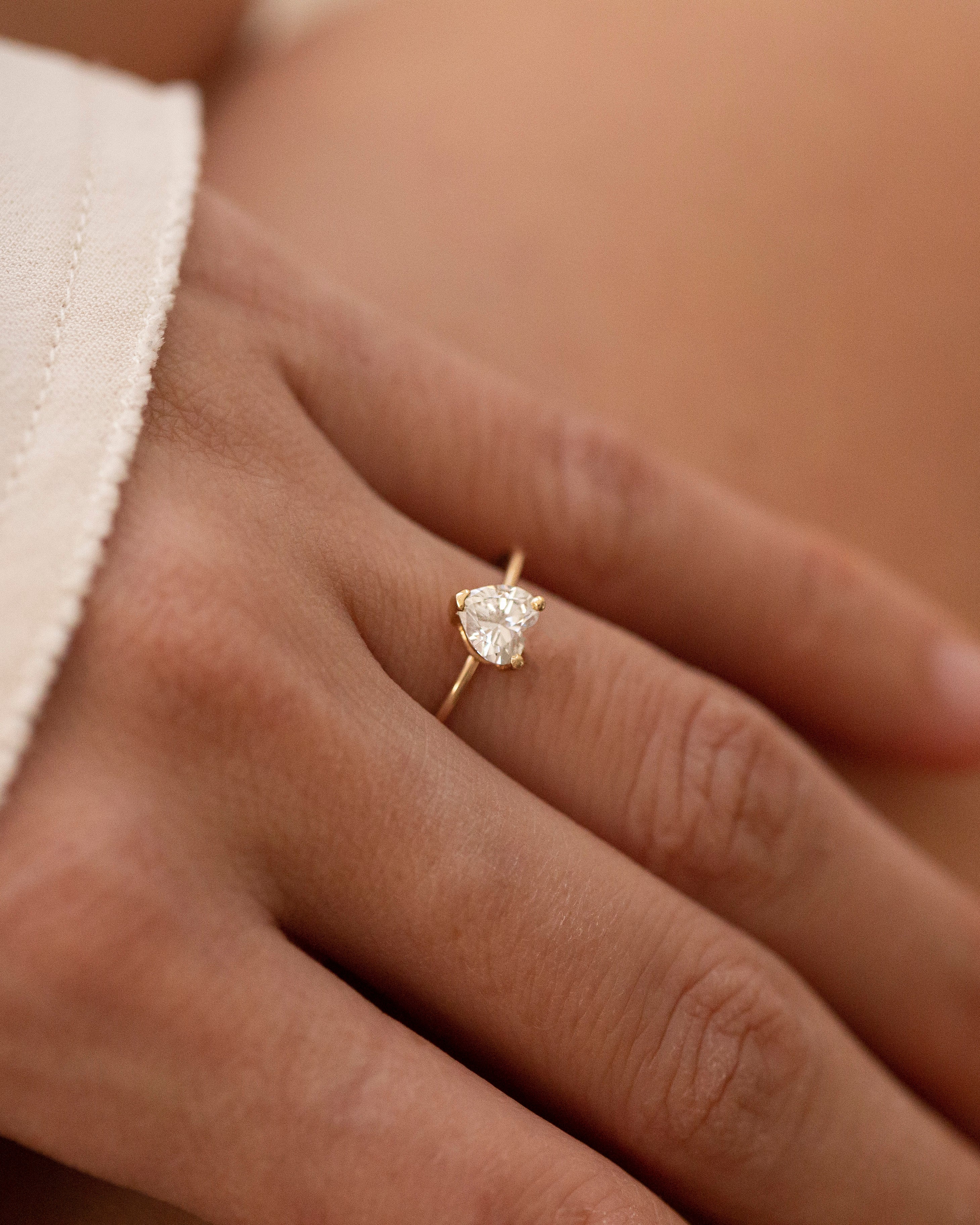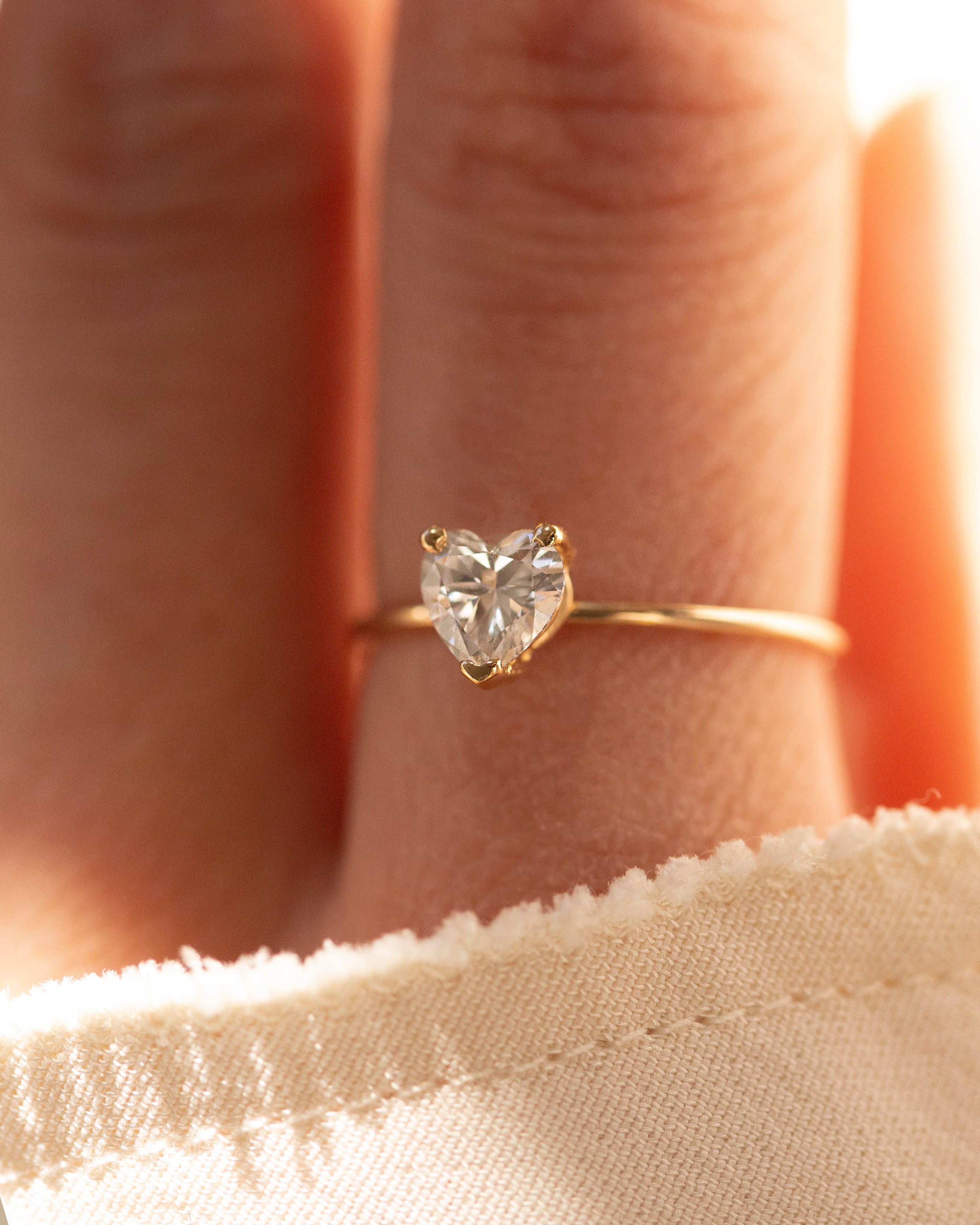 14K Gold Heart Cut Lab Diamond Ring • Minimalist Solitaire
