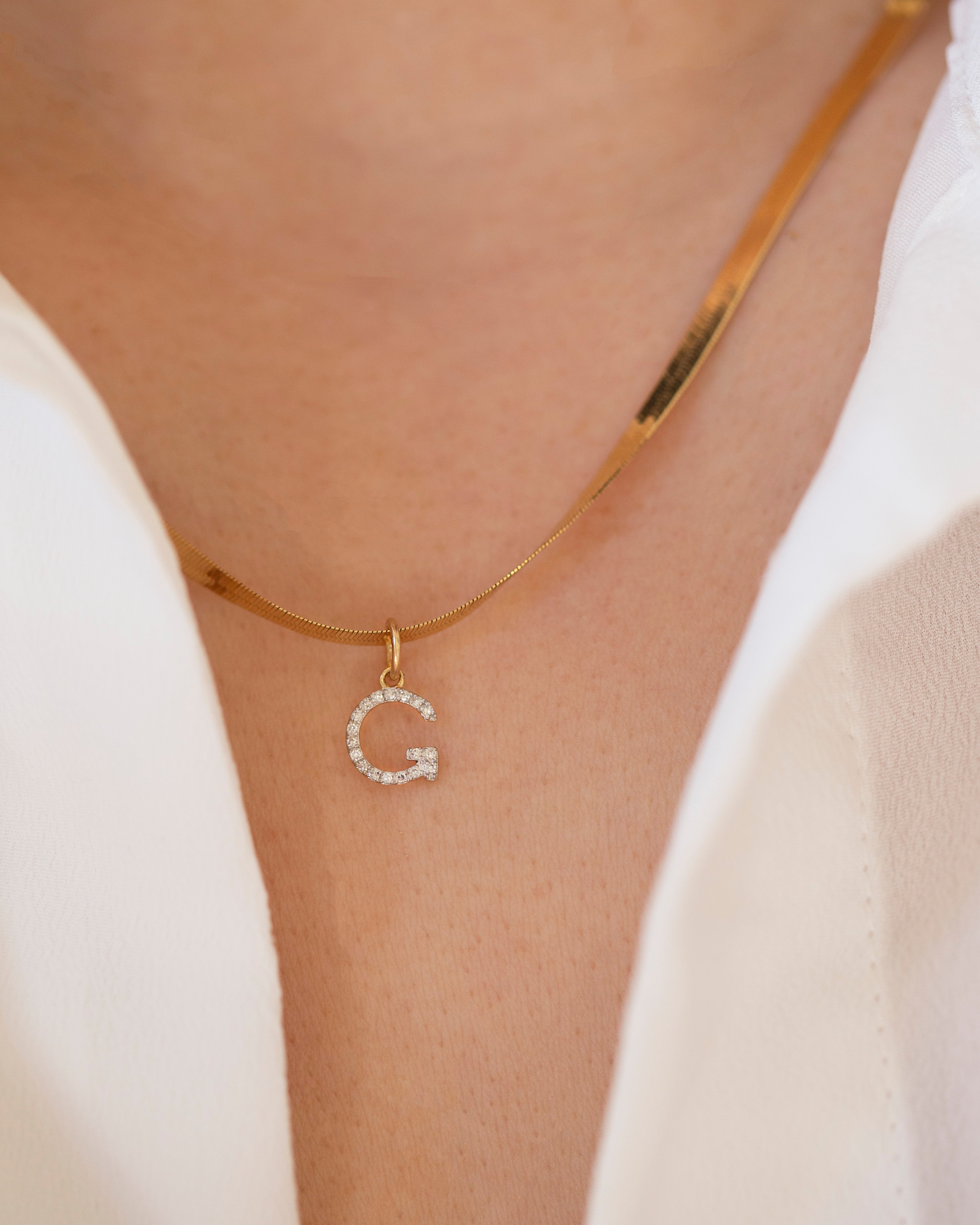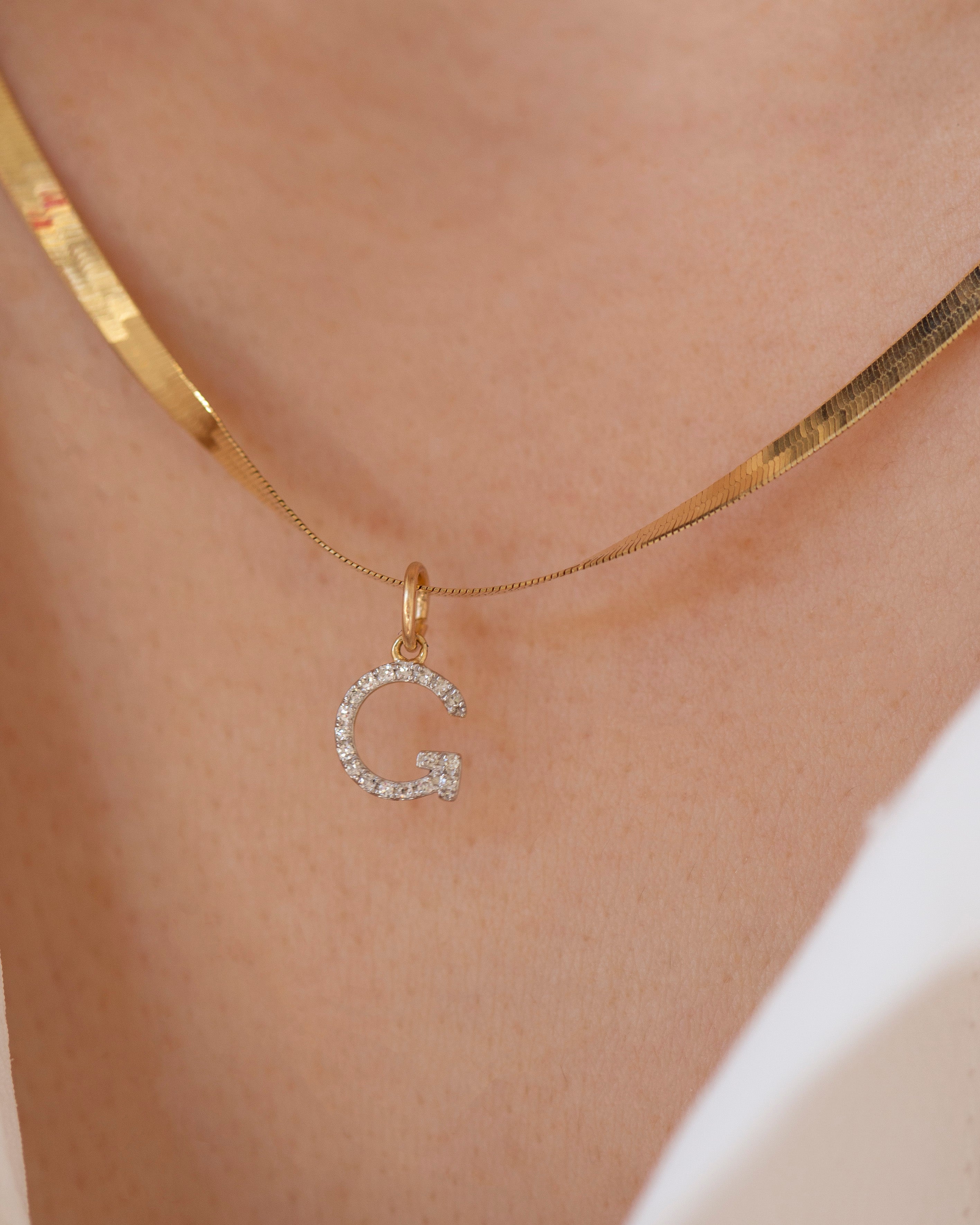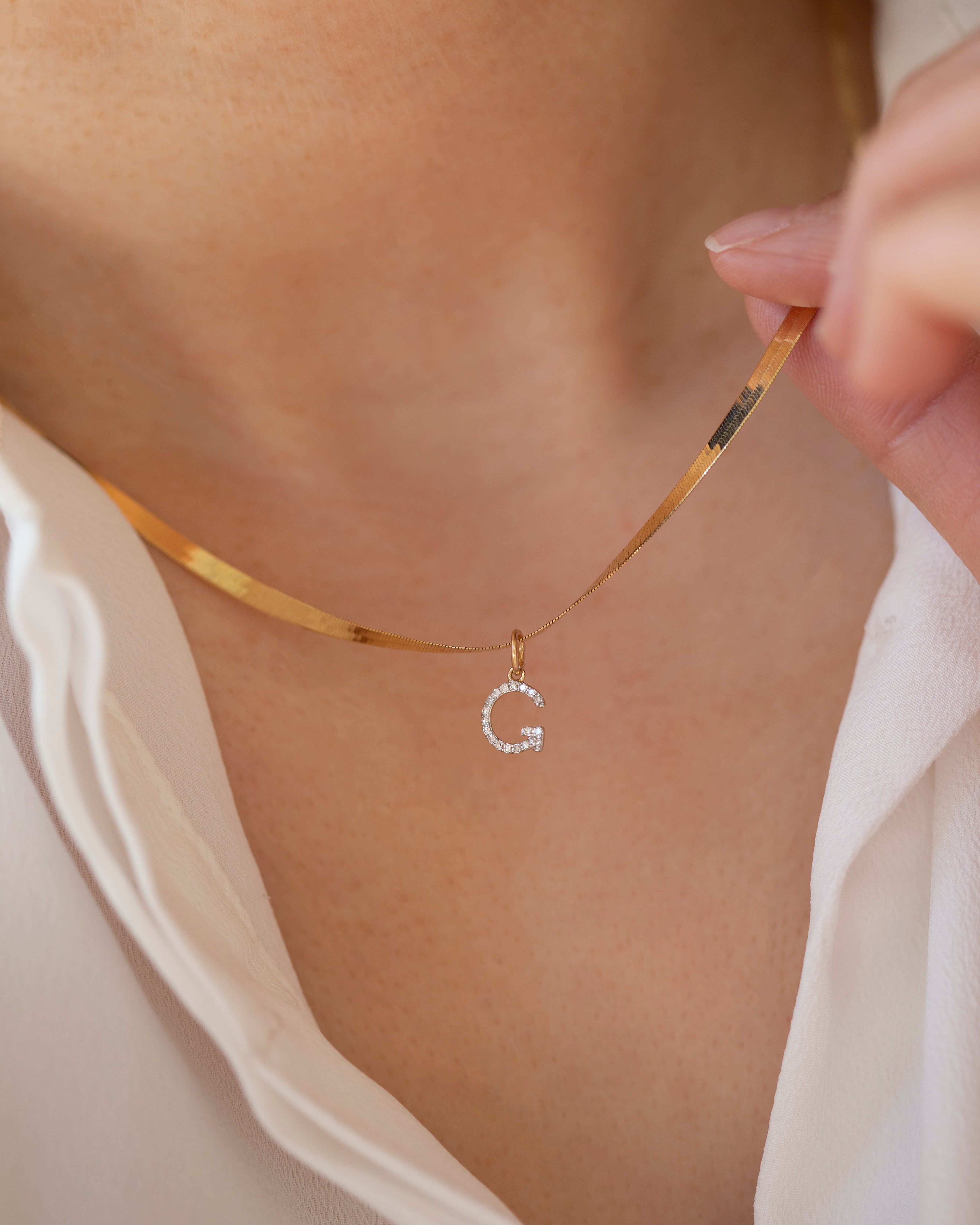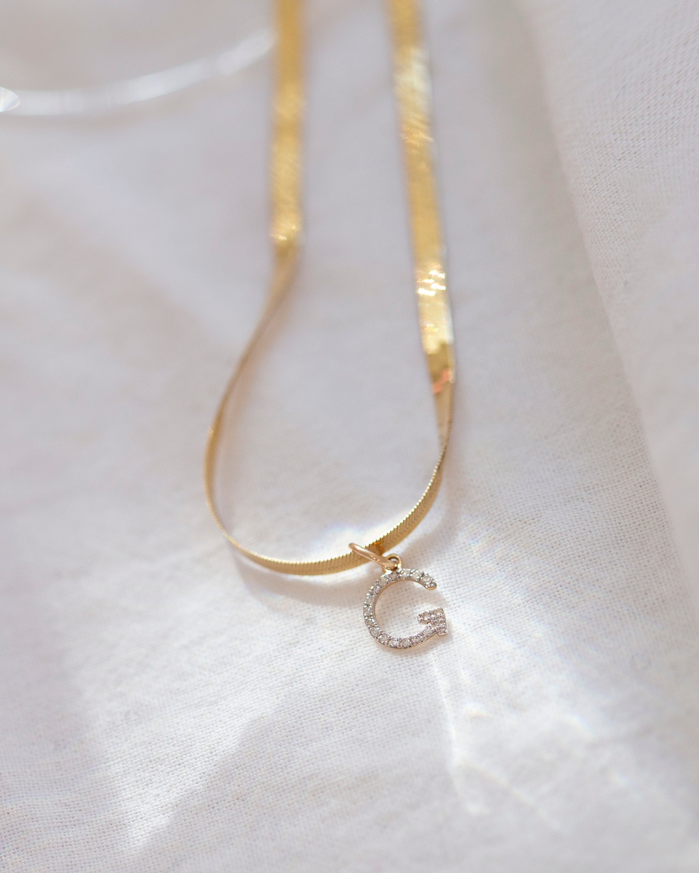 Genuine Diamond Initial on 14k Herringbone Chain Necklace