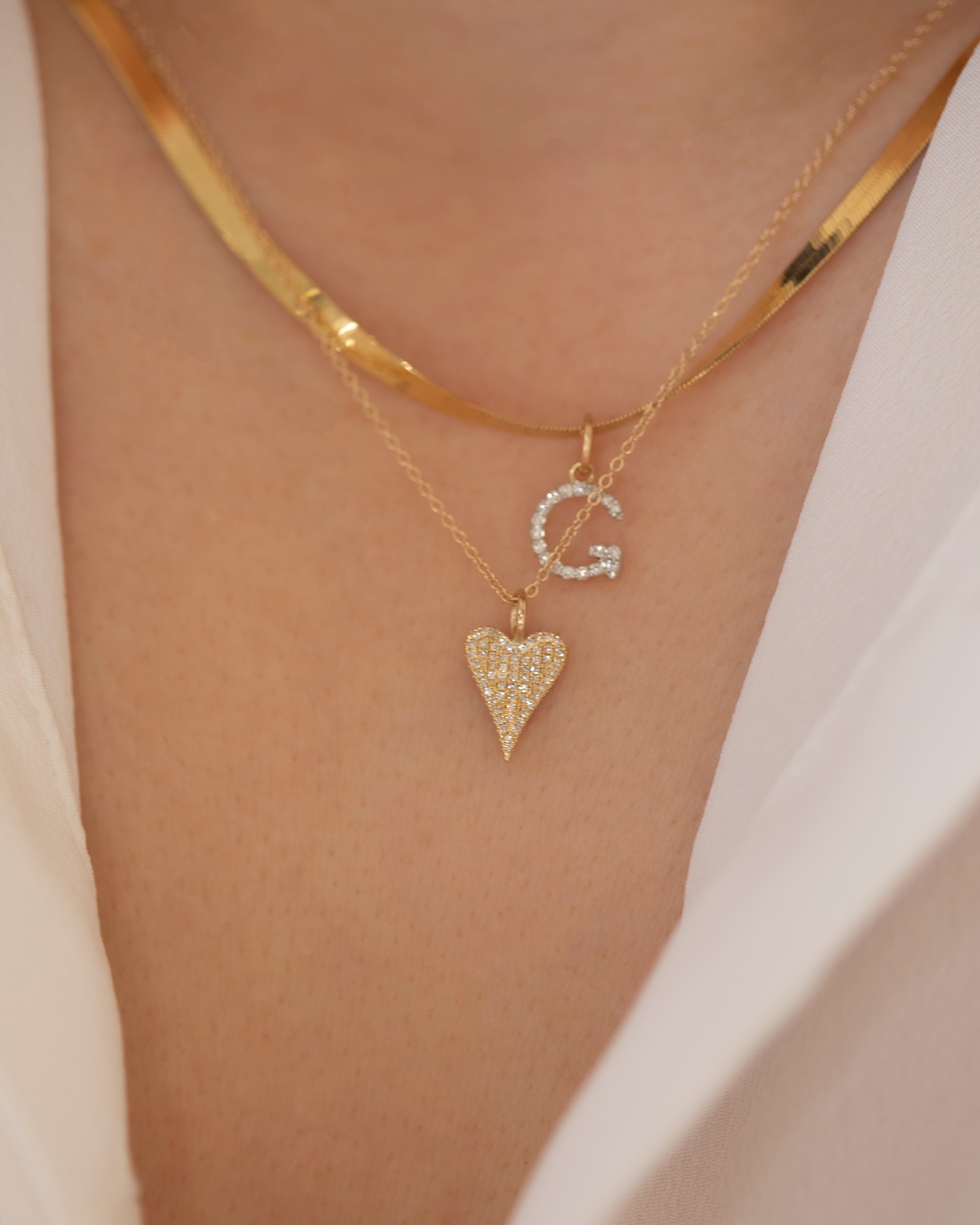 Big Diamond Pavé Heart charm Necklace