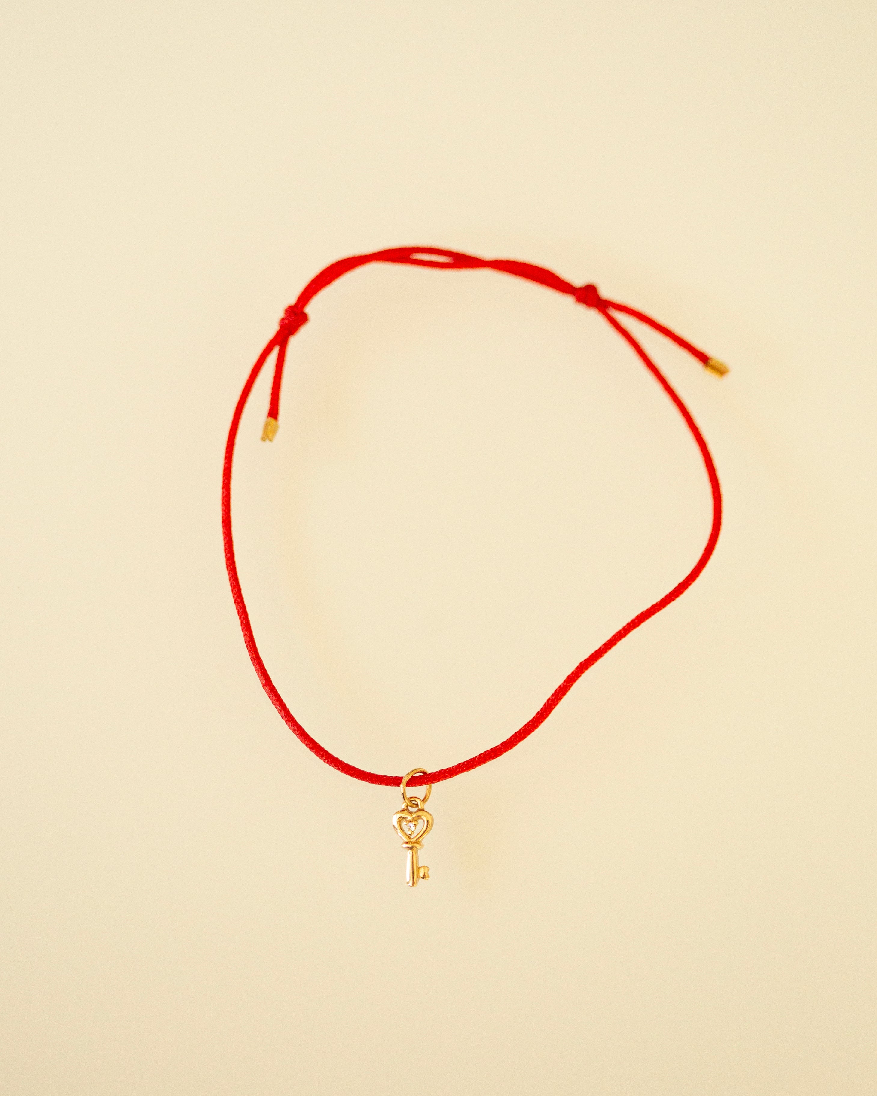 14k Heart key Charm String Thread Bracelet