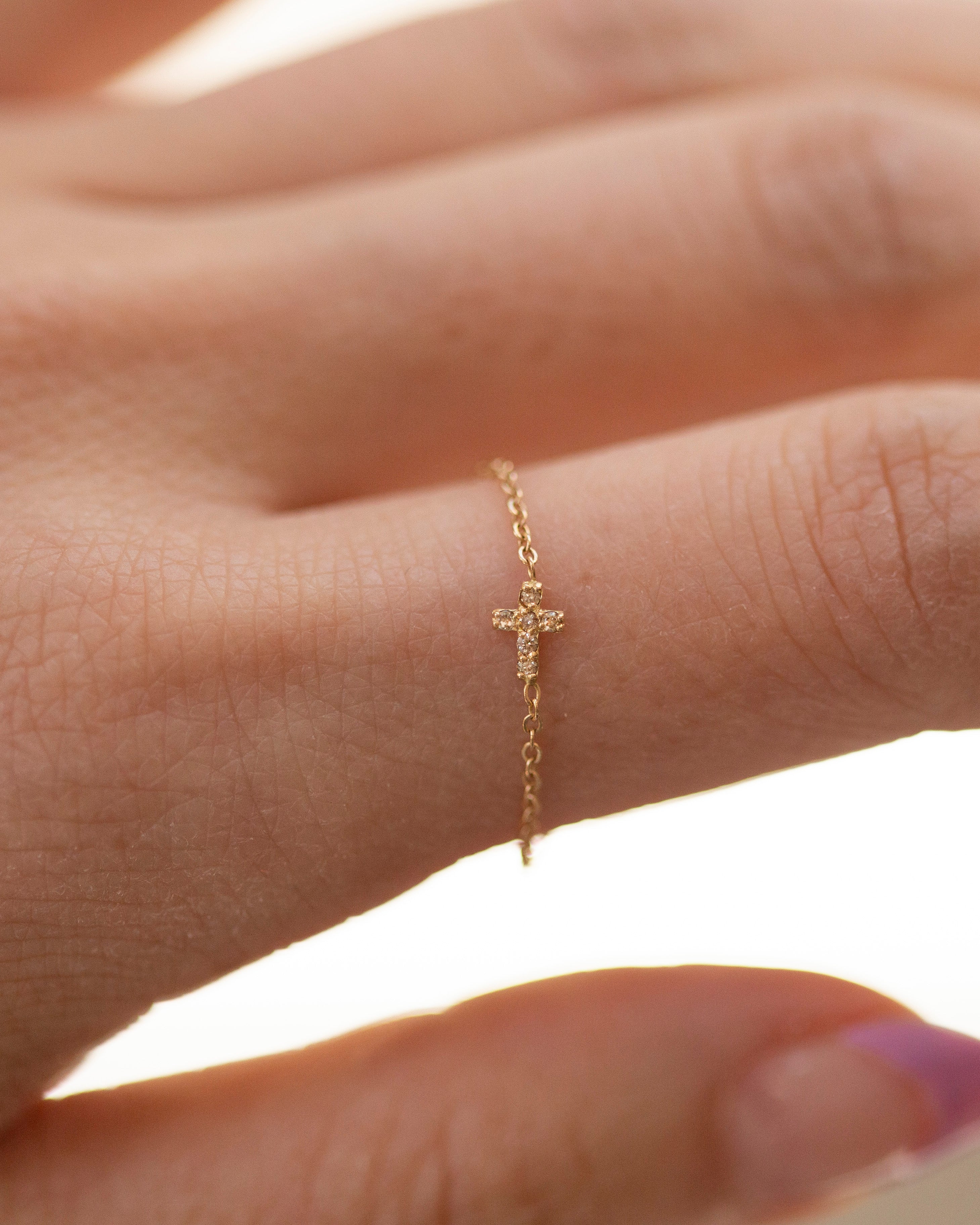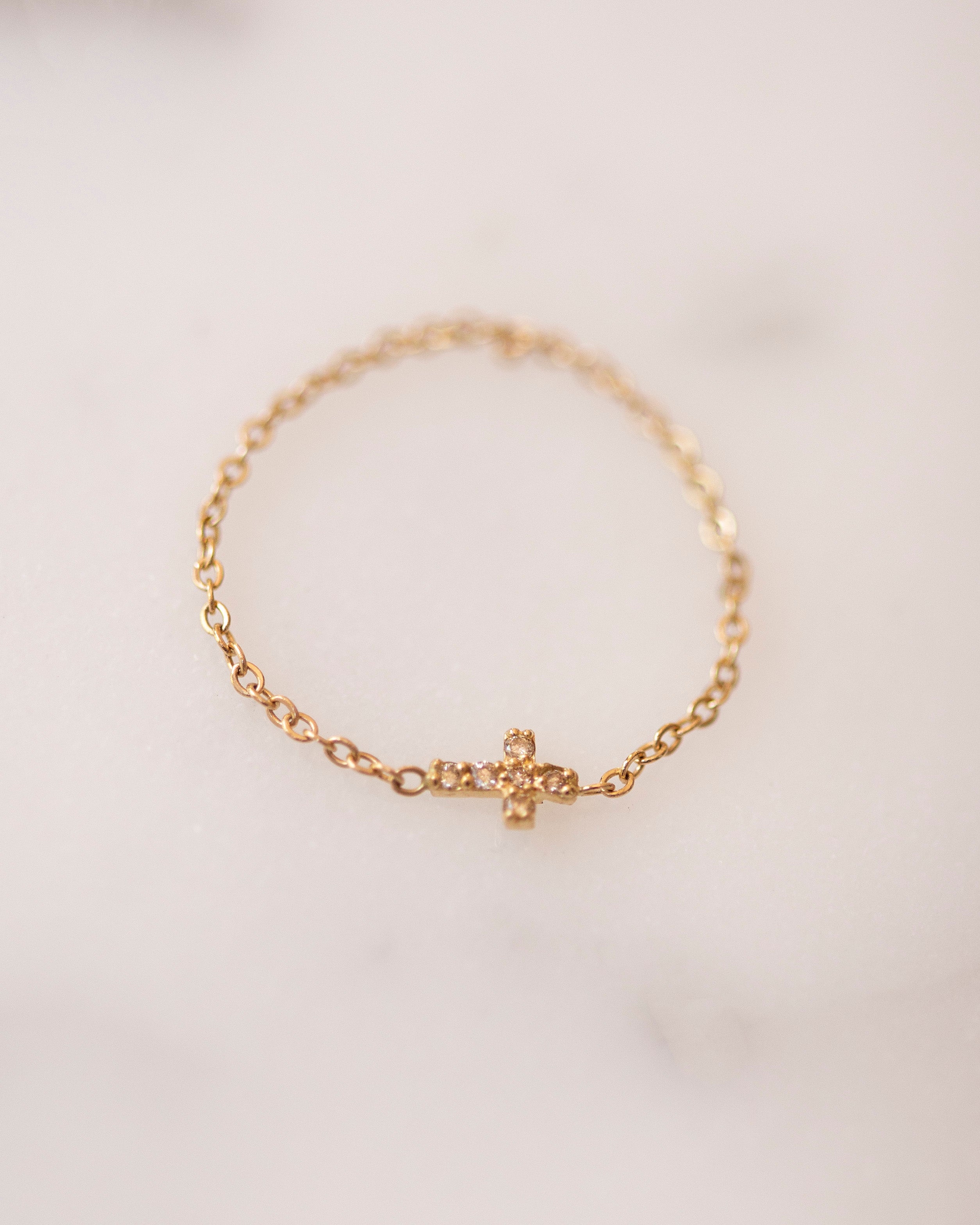 Small 14k Diamond Cross Chain Ring