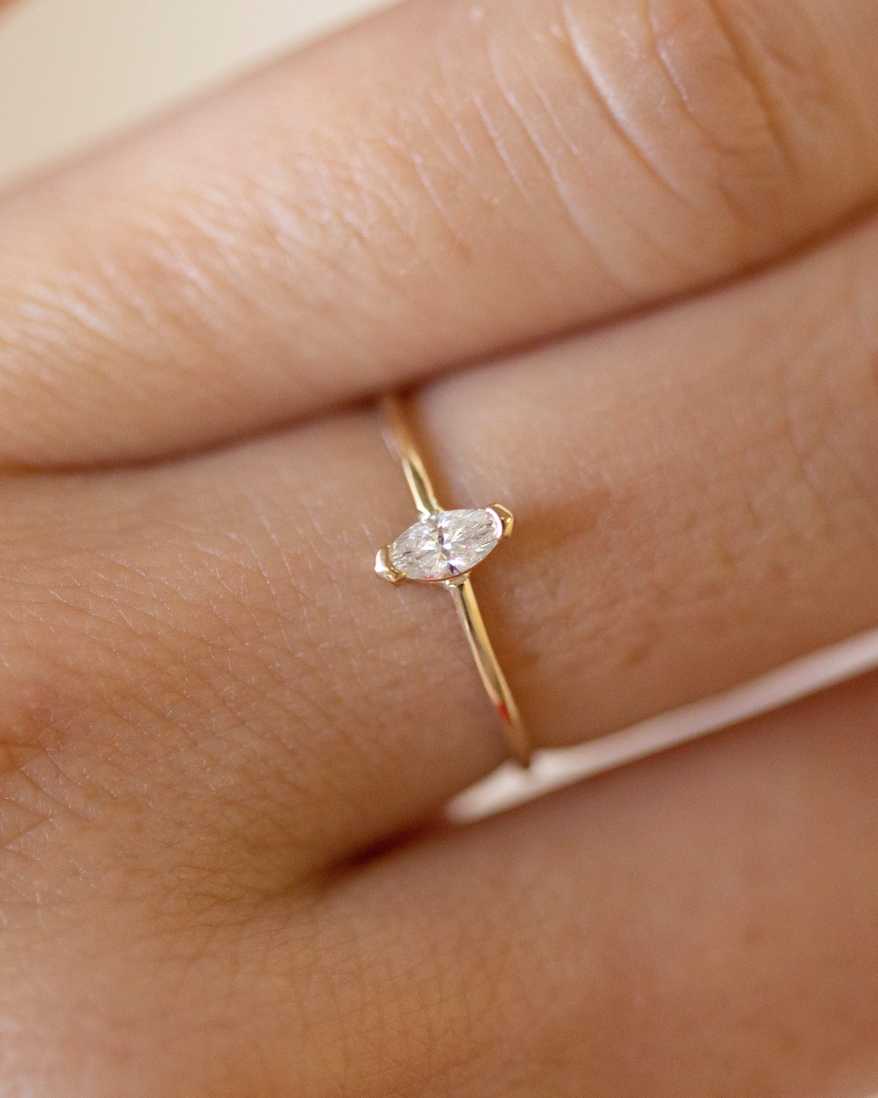 14K Gold Marquise Lab Diamond Ring| VS D-F color