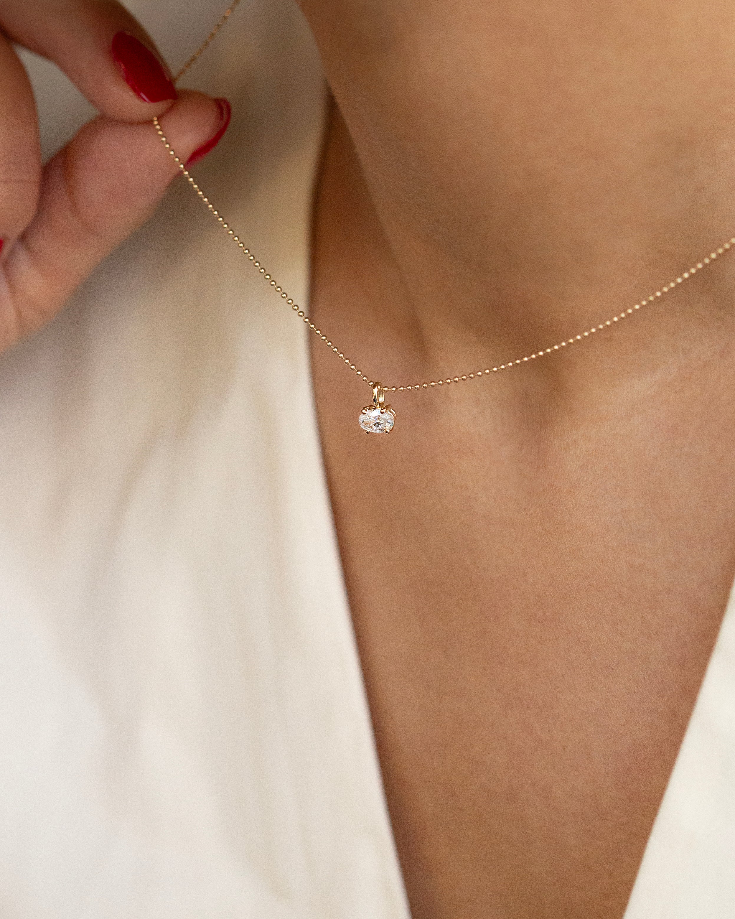14K Gold East West Oval Lab Diamond Necklace