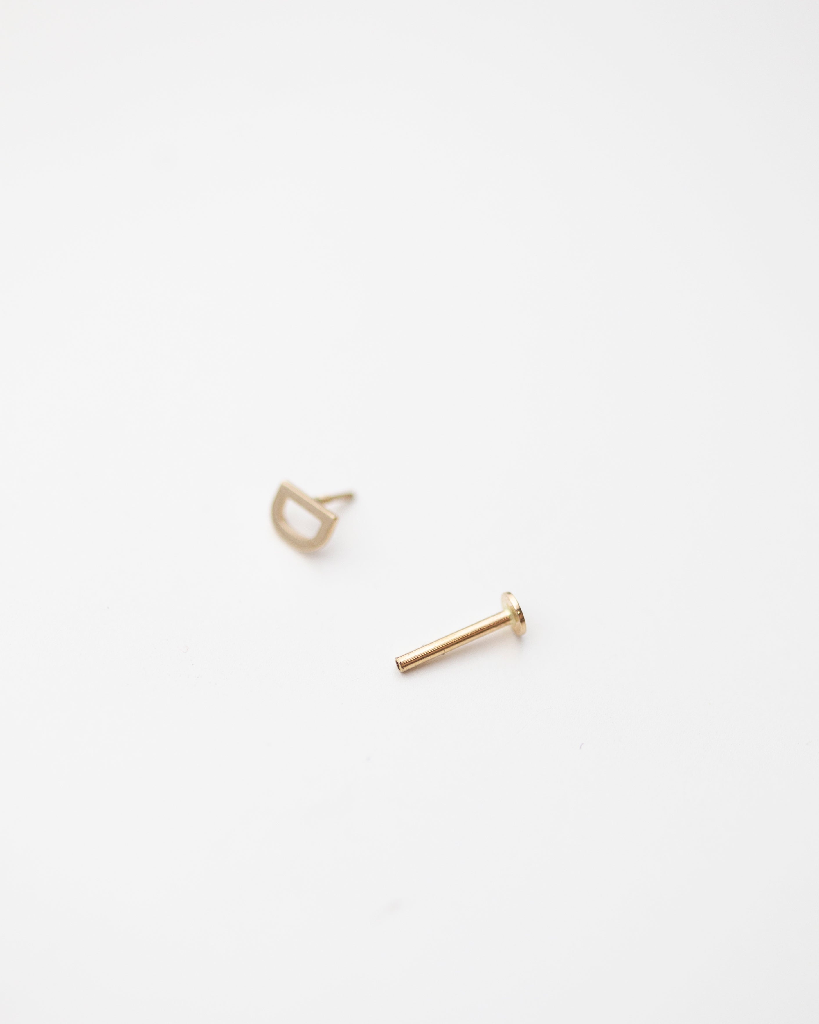 Minimalist, high quality, and timeless.Personalized letter stud earring with flat backing. Very secure and comfortable to wear.• 1 piece per order*• 14k Gold post and backing• 18 gauge (1mm Thick)• Each initial measures approx. 4.8mm• Post Length : 6mm or 8mm* Leave us your initial/s in the comment box at checkout.