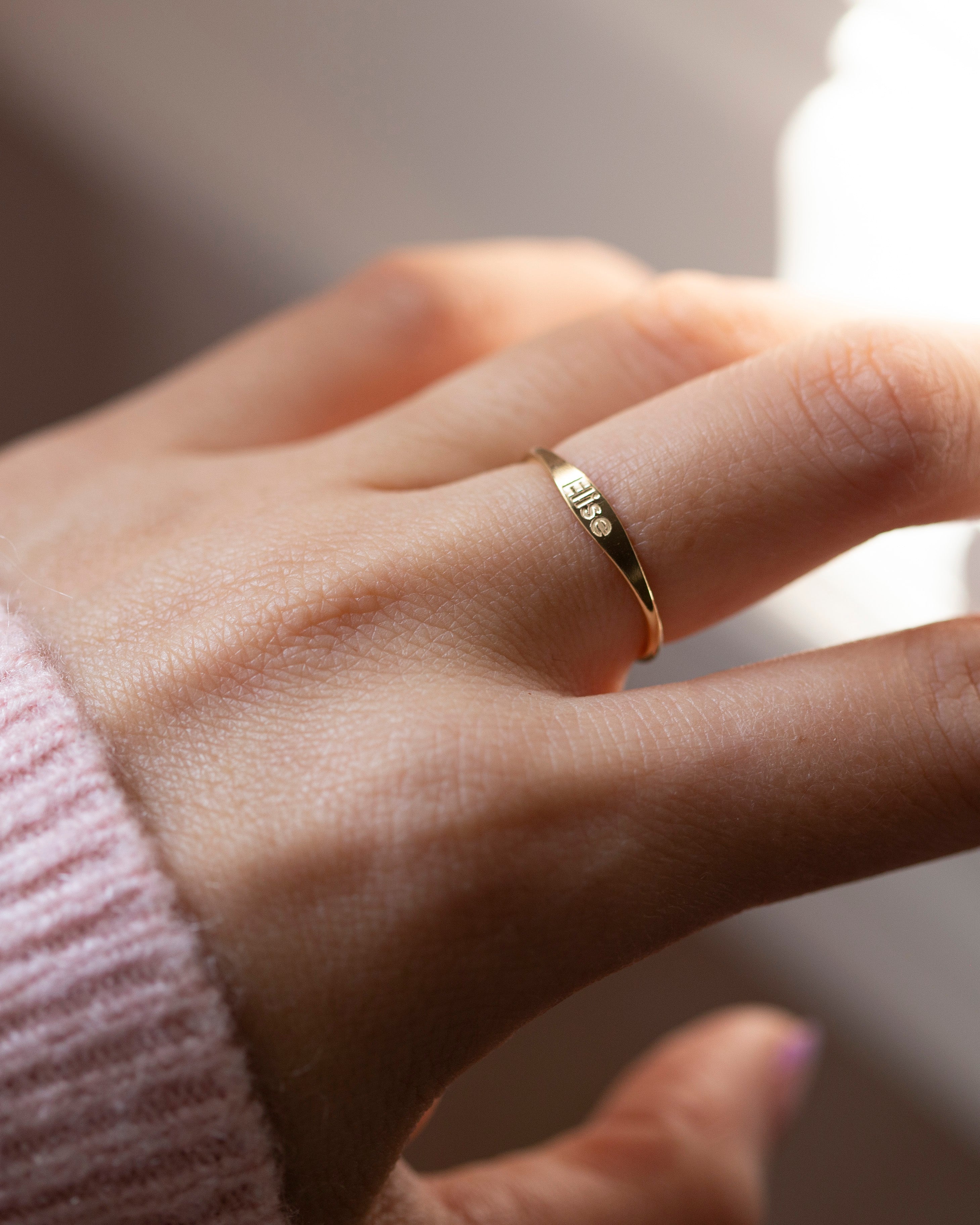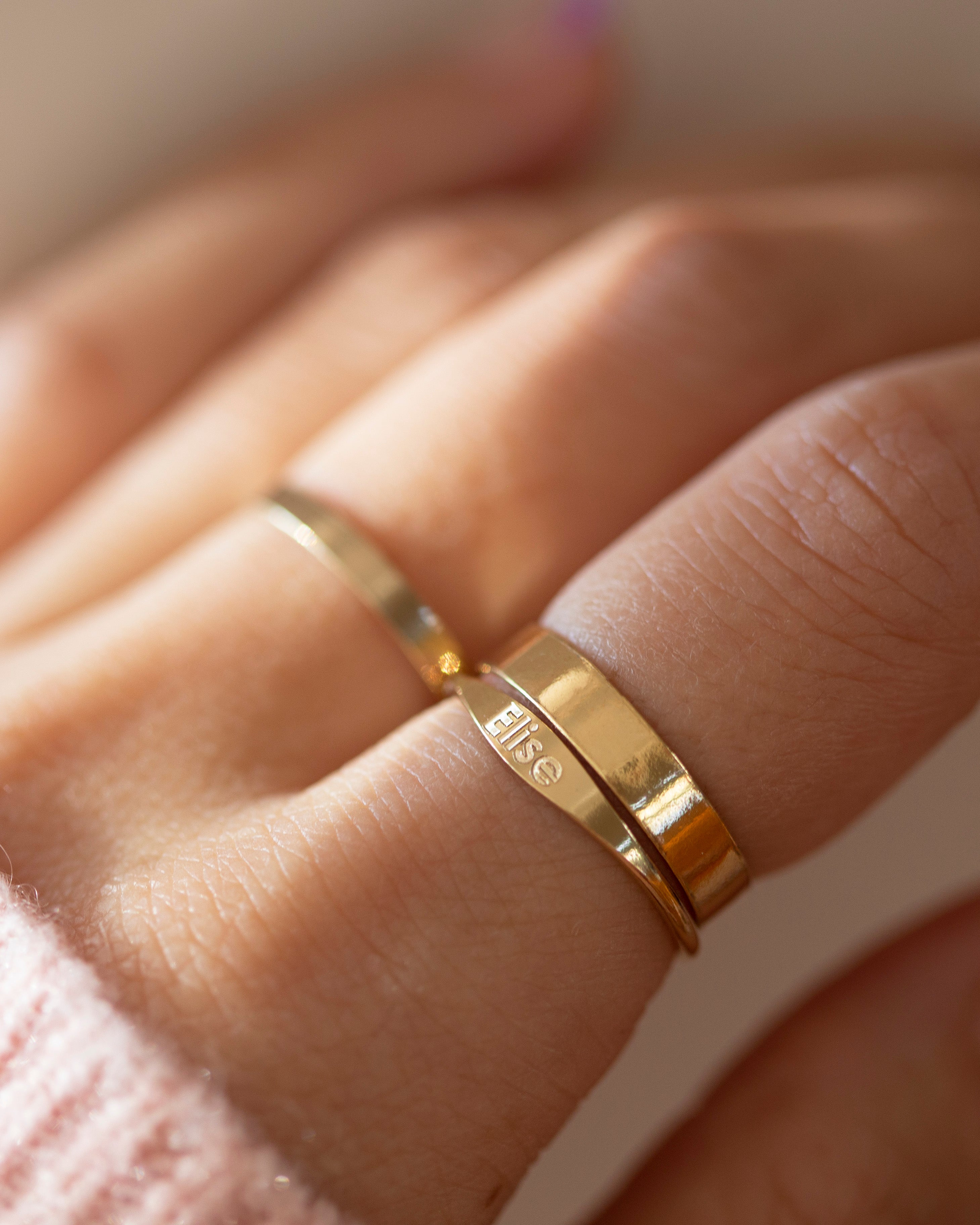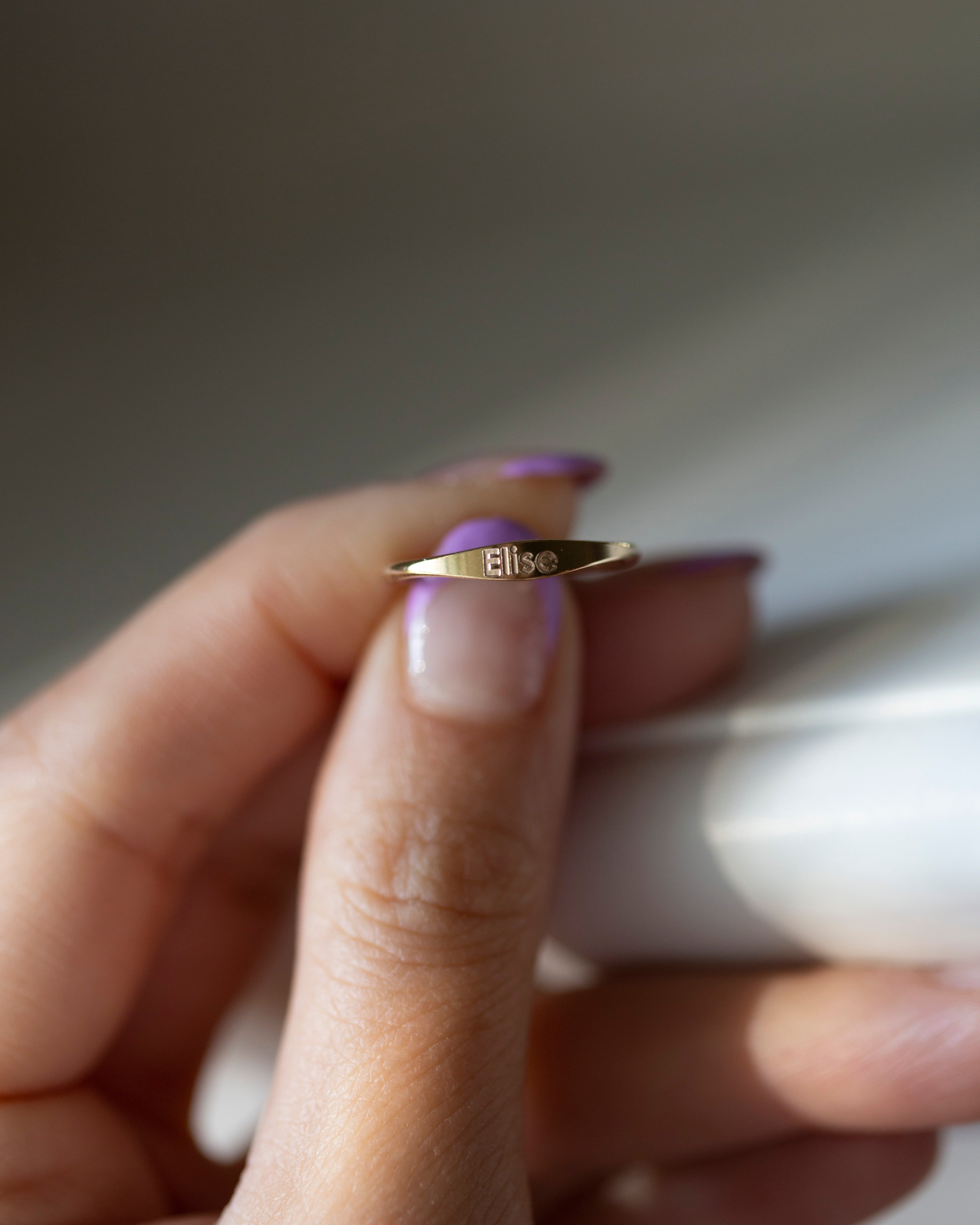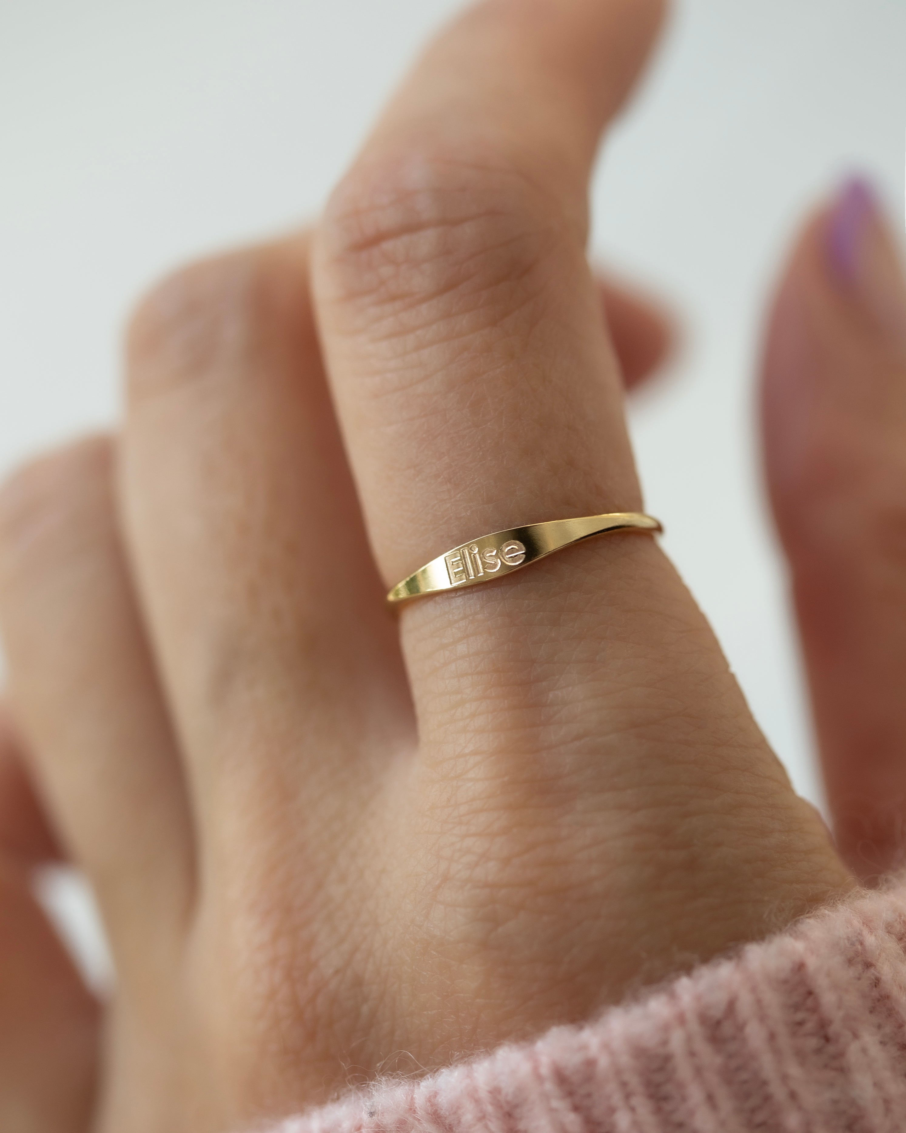 Custom engraved name ring in 14k gold filled will become a cherished keepsake.