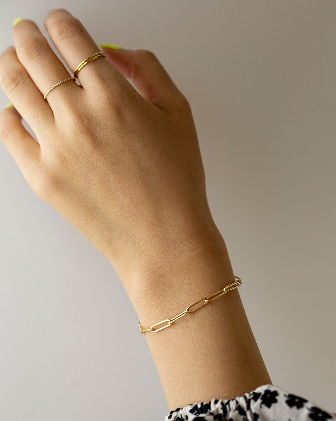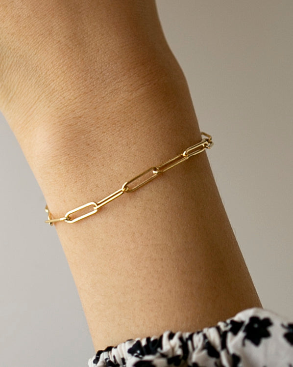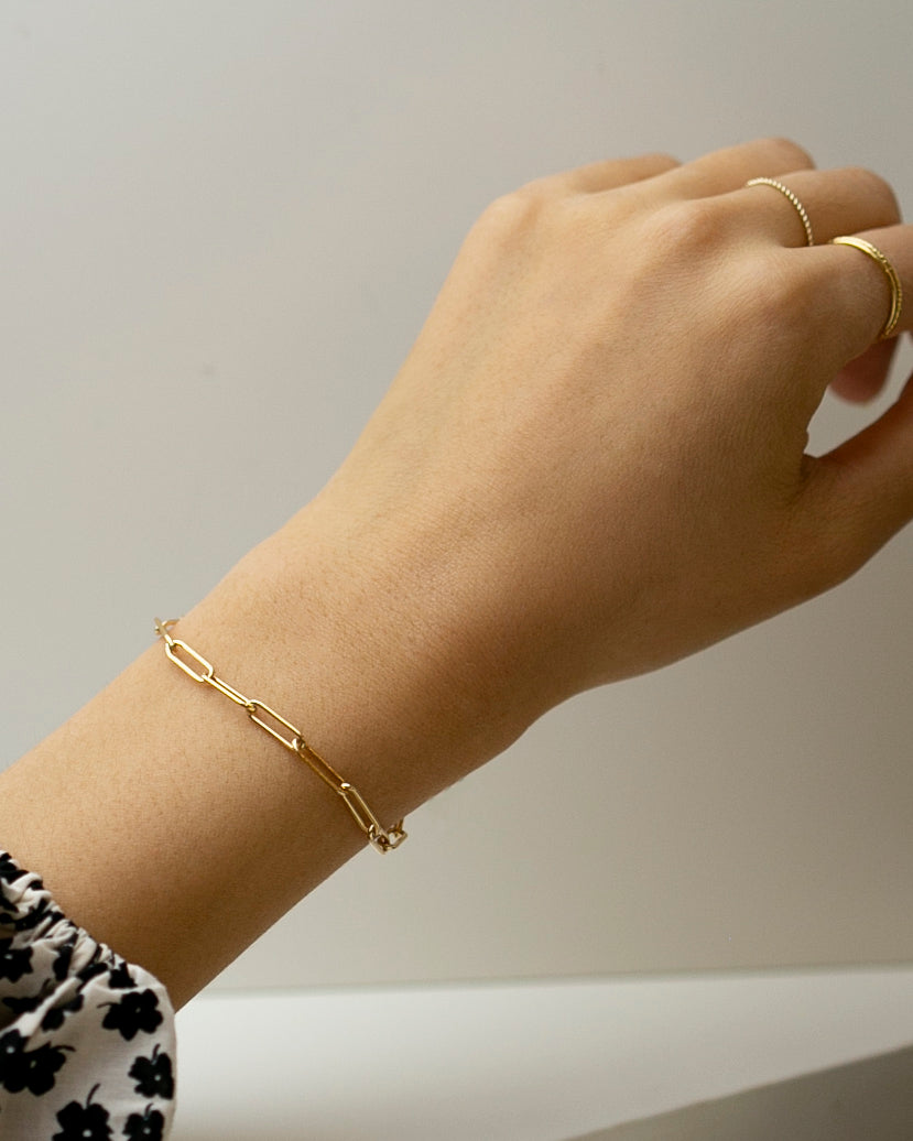 A classic piece made for everyday wear. This 3.7mm paperclip link bracelet is crafted fromhigh-quality gold filled or sterling silver material, giving you the shine and durability of real gold without the high price tag. It’s tarnish-resistant, comfortable, and perfect for stacking with other bracelets.
