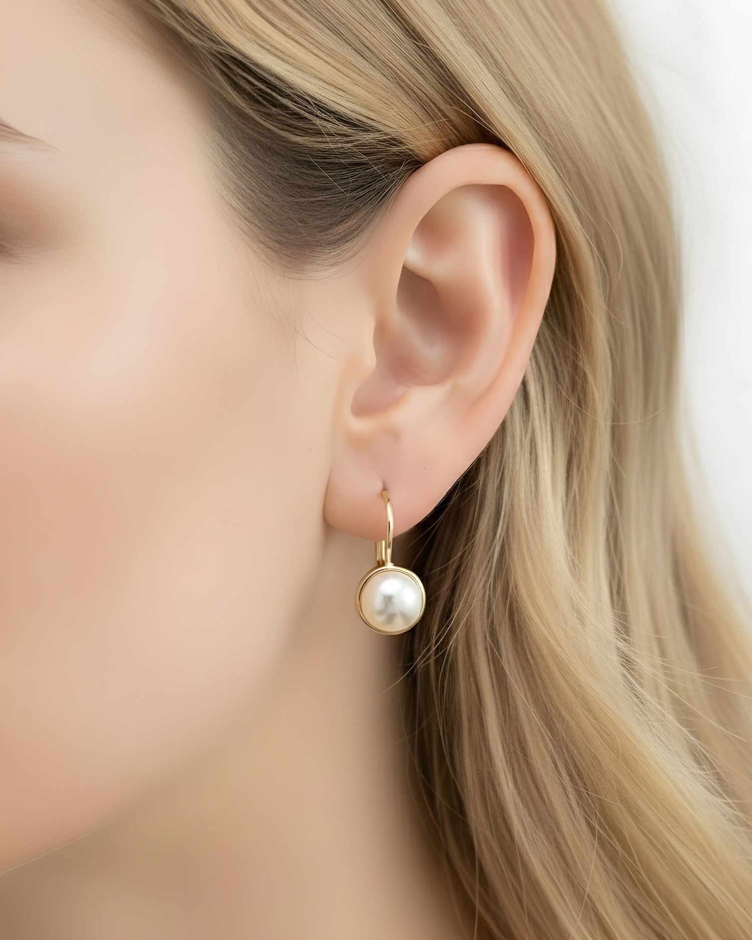 • 14k gold • Lever-back earrings • 1 Pair• 7mm white freshwater pearl