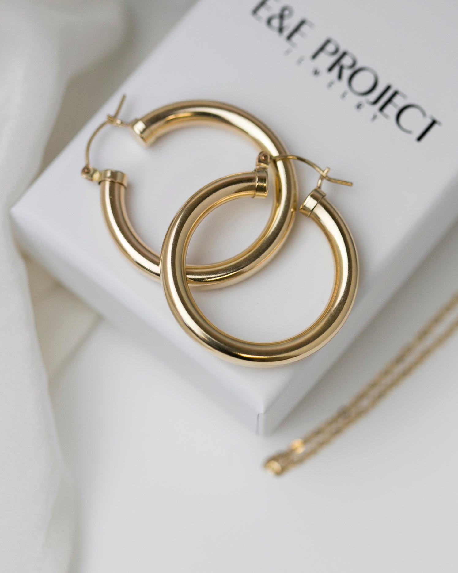 Expertly crafted from high-quality gold, these Chunky Hoop Earrings are a timeless addition to your jewelry collection. The classic design ensures versatility and elegance for any occasion, making them a must-have staple piece in your wardrobe.