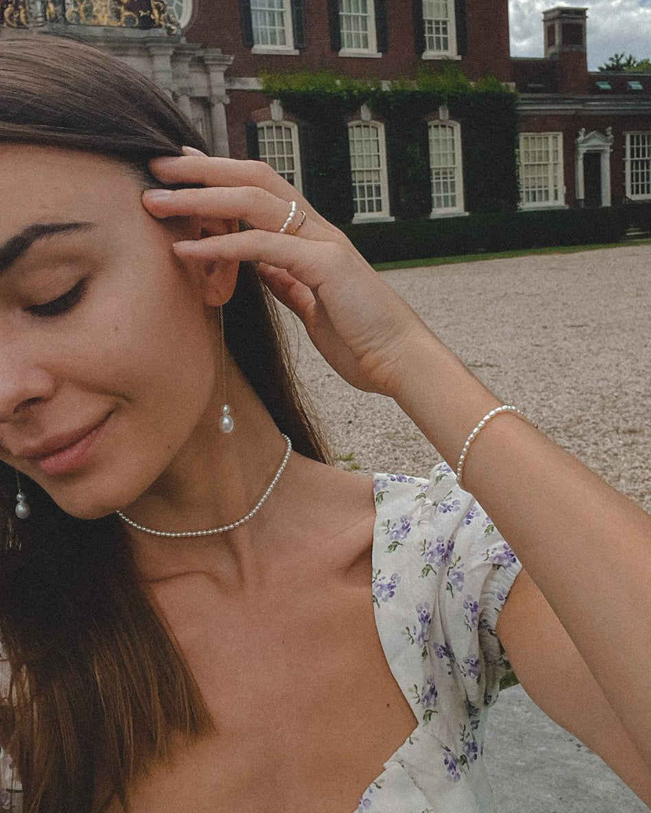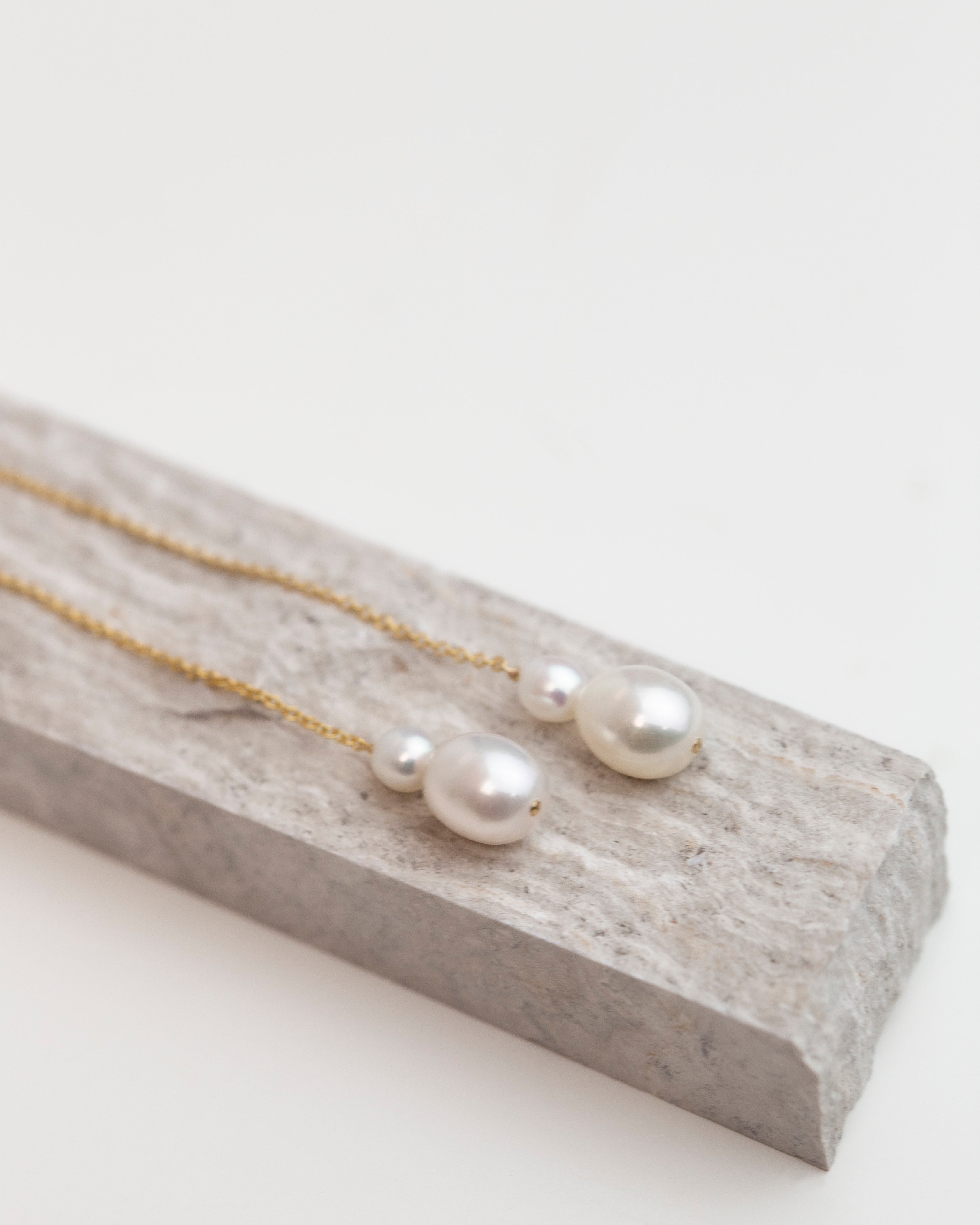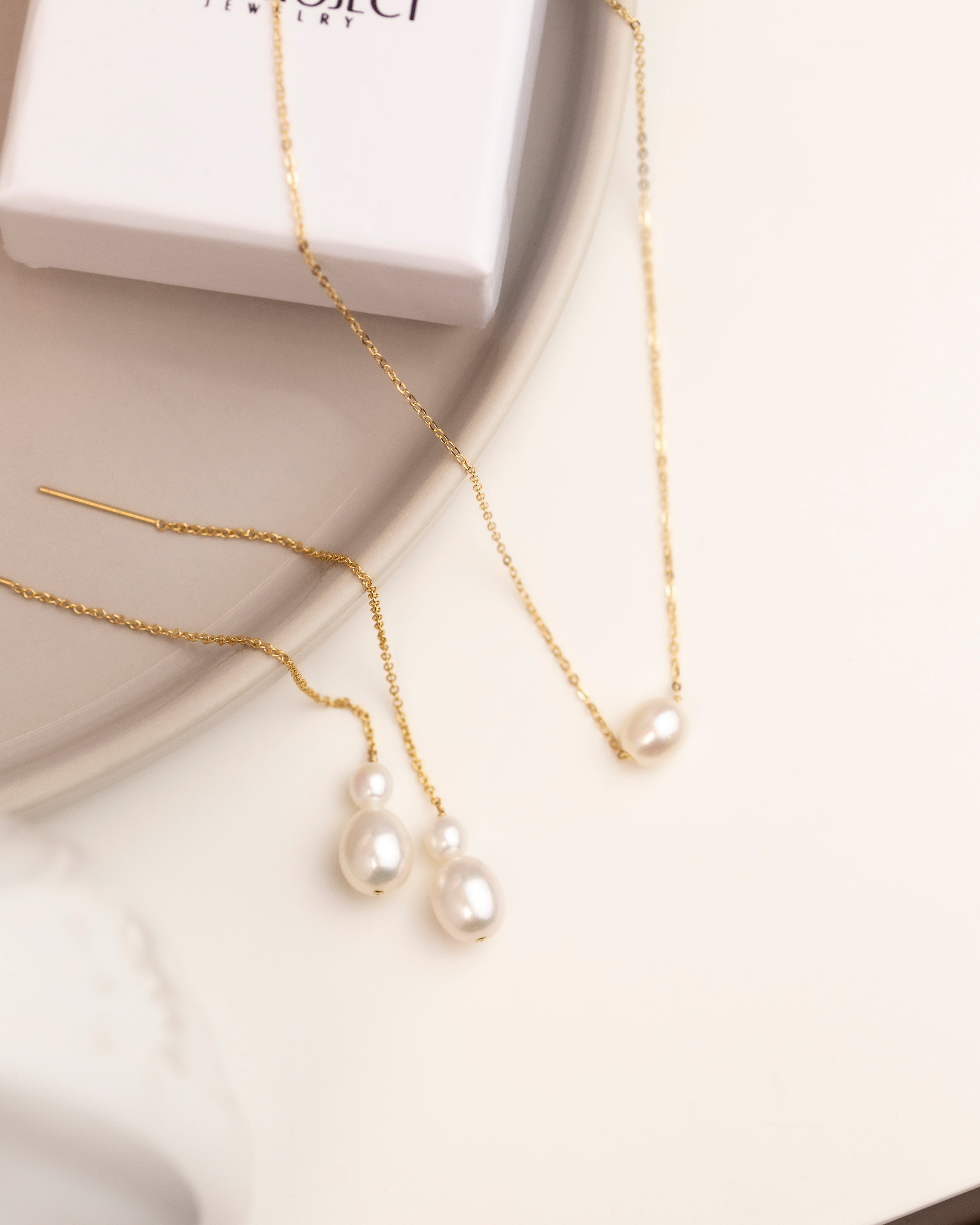 Ear Thread Earrings with Pearl in Gold filled or Sterling Silver. Elegant drop earring featuring freshwater pearls with dainty Gold Fill or Sterling Silver chain. Perfect bridesmaids gift or for bridal jewelry.