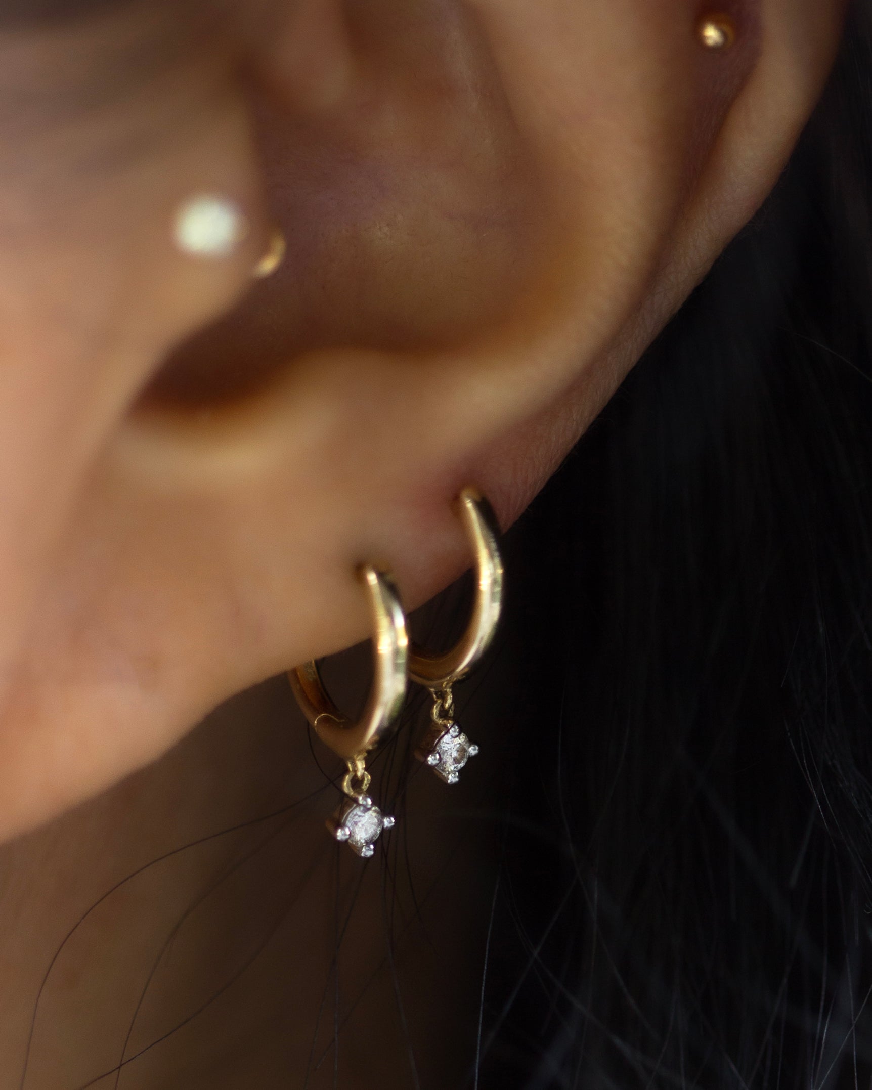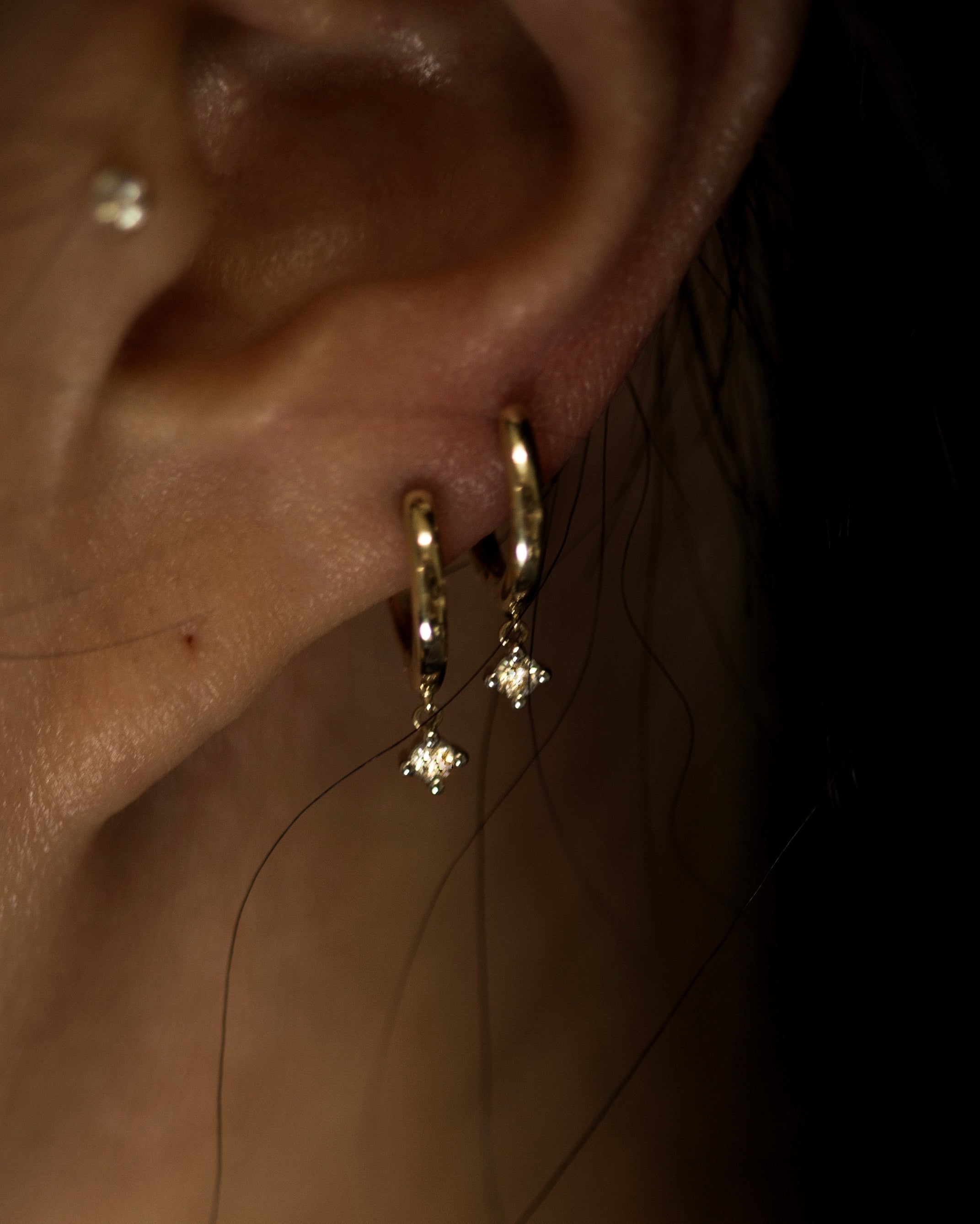 Petite Diamond Dangling Hoop Huggie Earrings