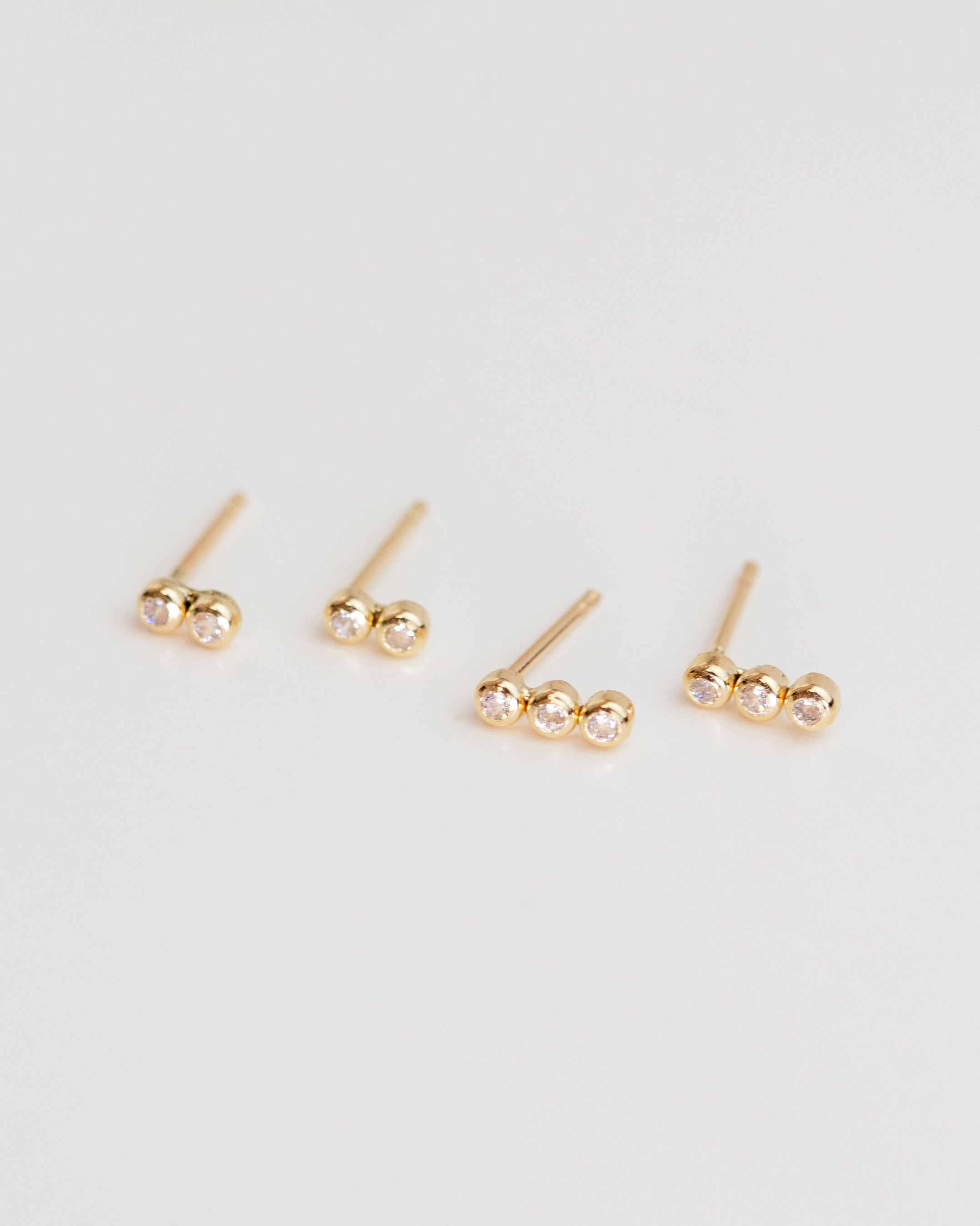 14k Double/ Triple CZ Stud Earrings