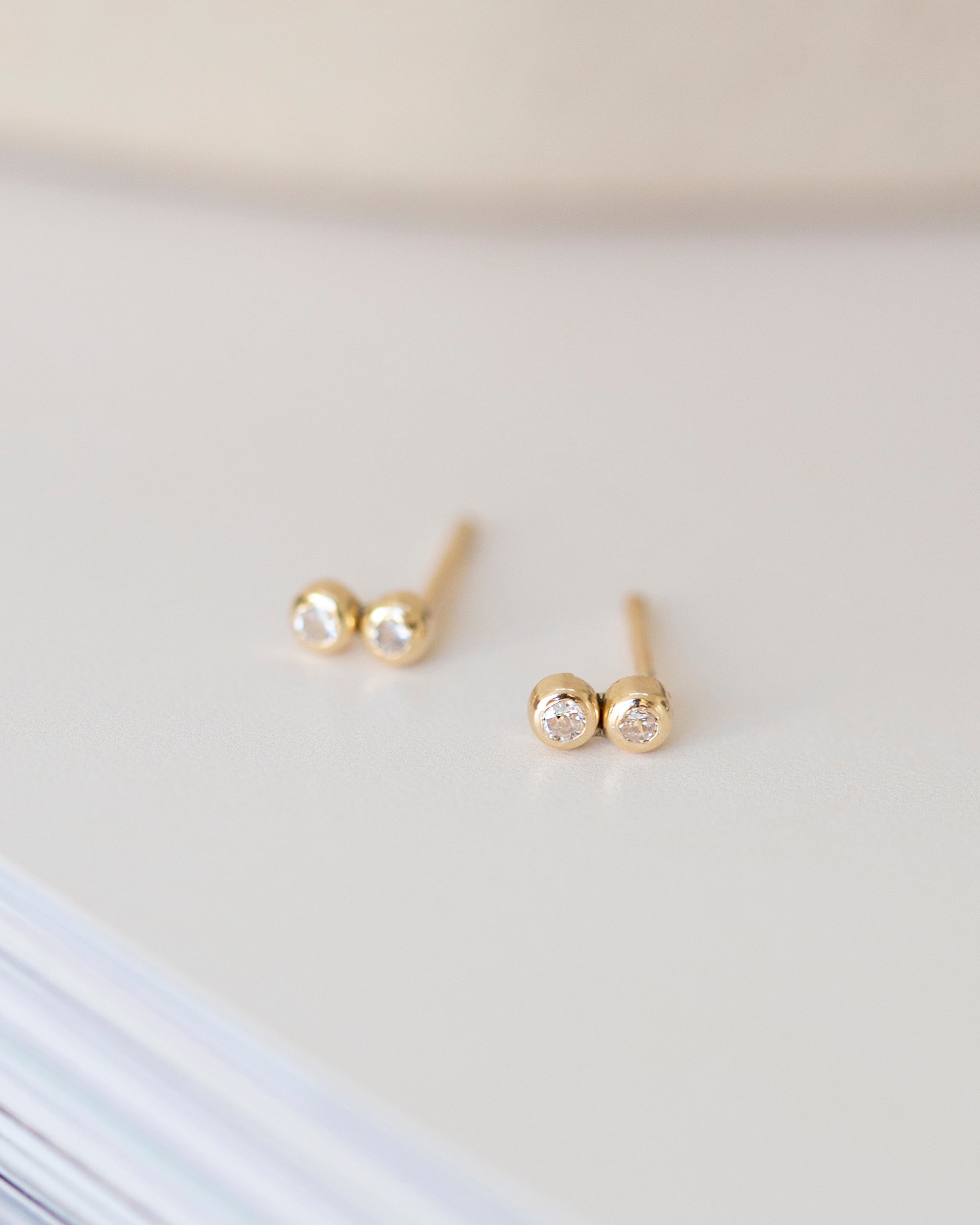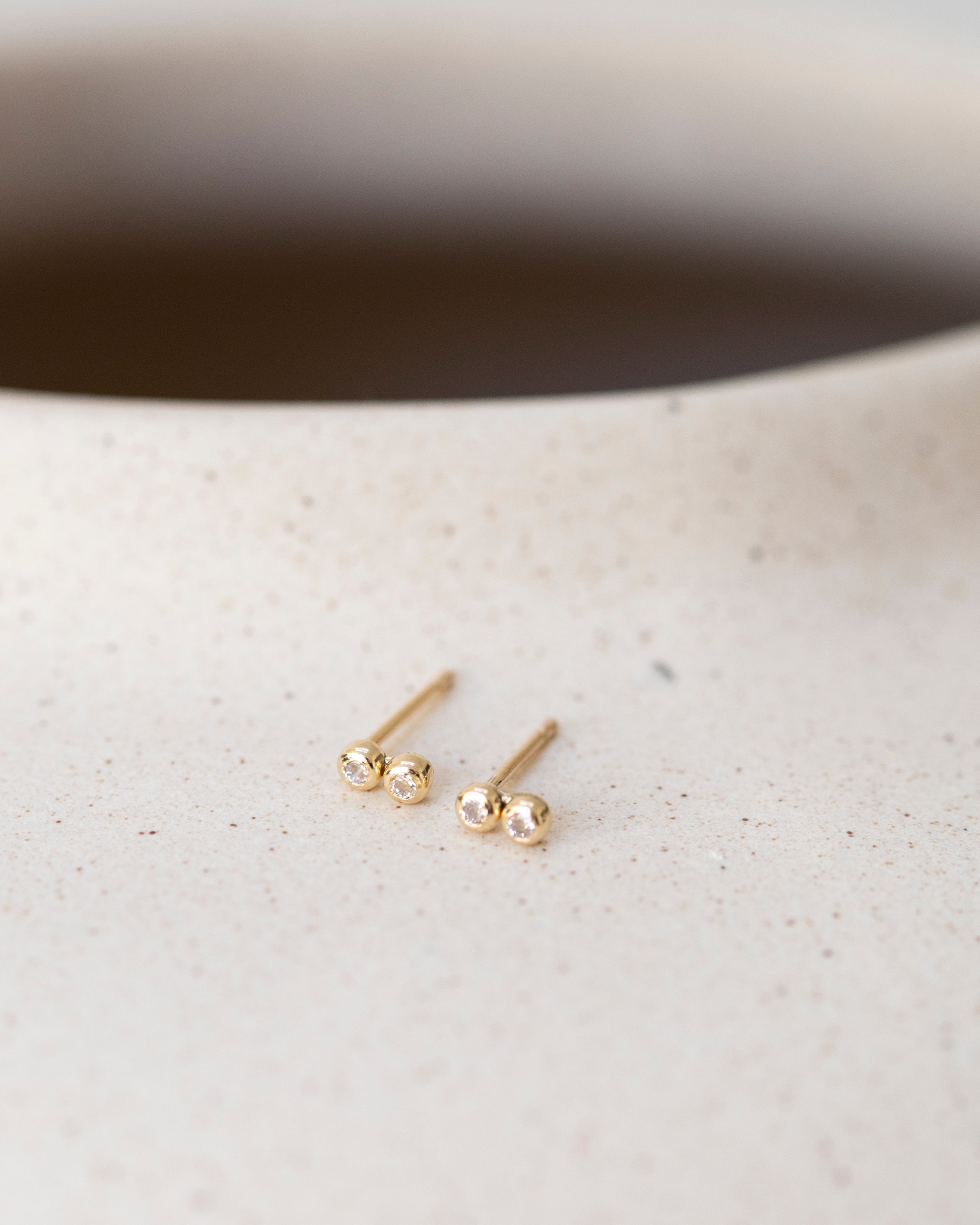 14k Lind bar studs with diamond accent