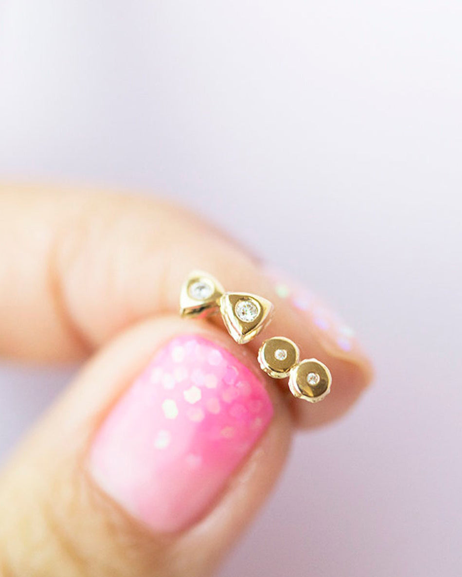 14k Triangle button Earrings