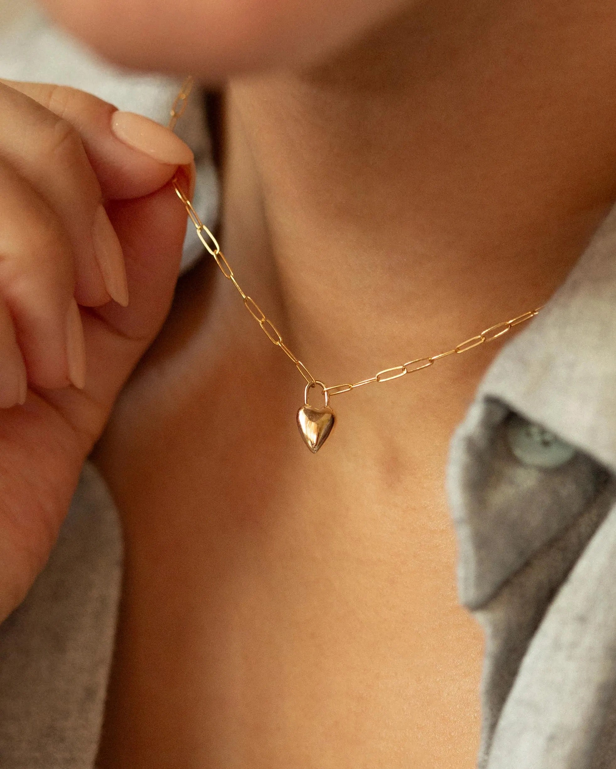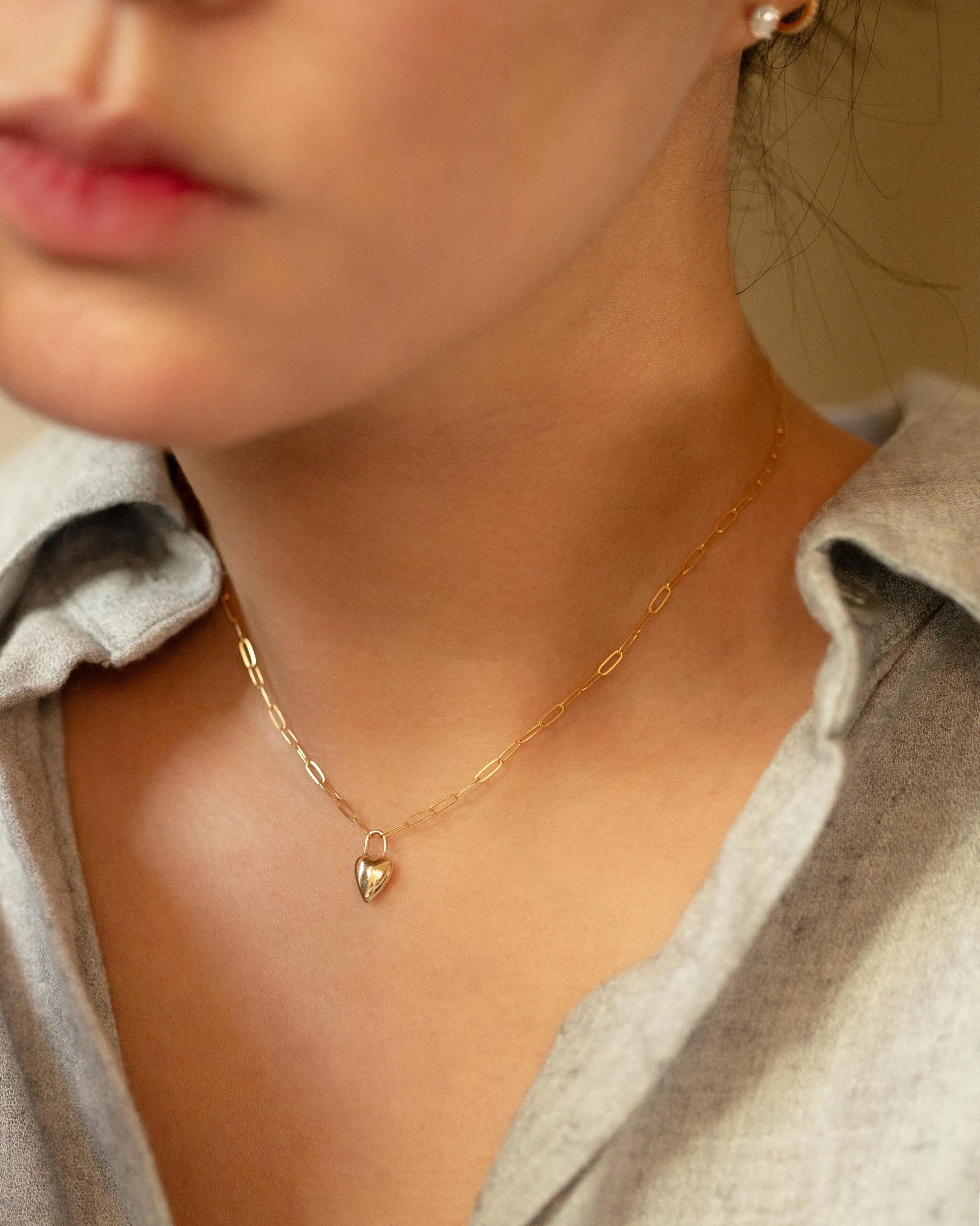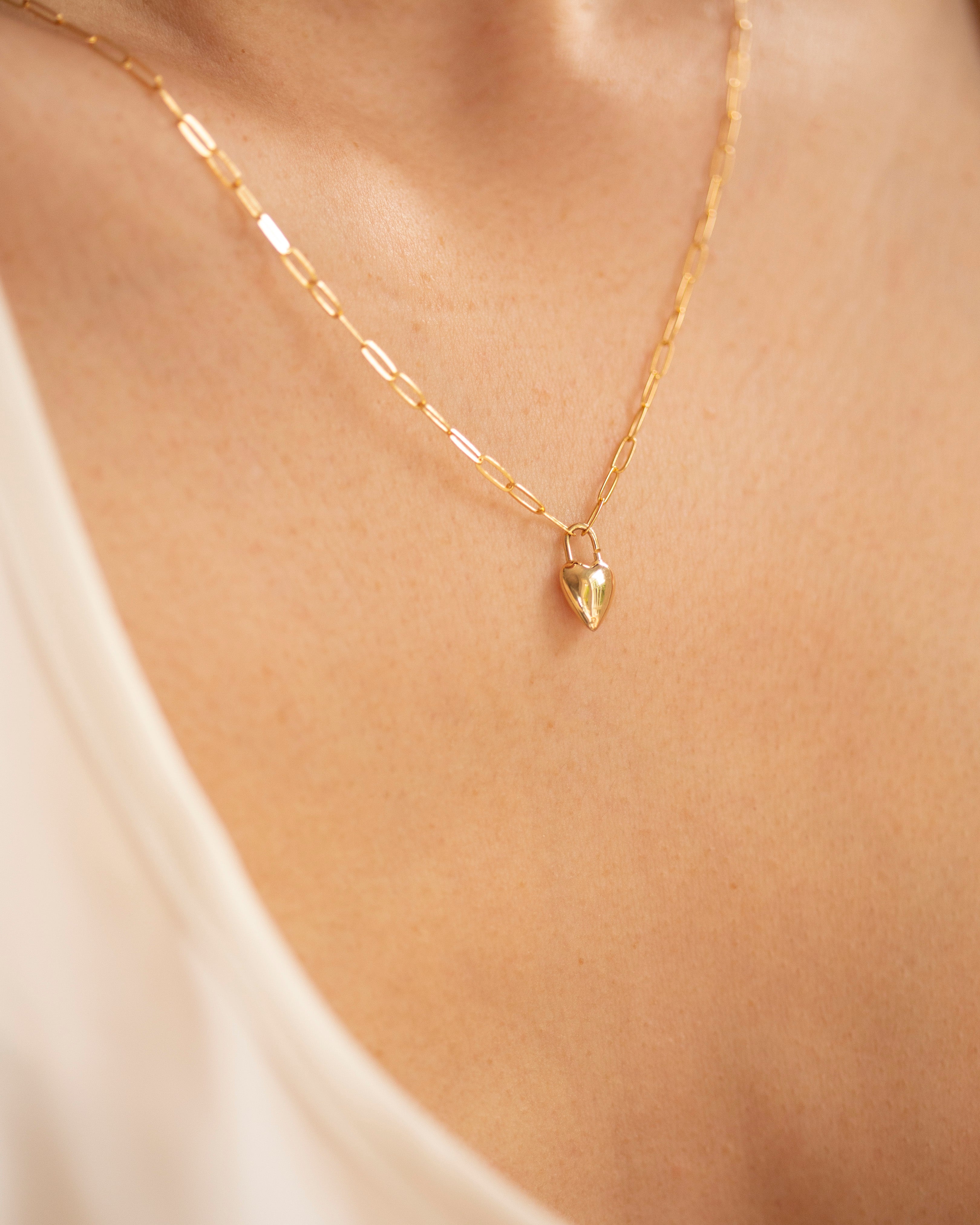 A timeless piece with a personal touch. Our 14k Gold Heart Necklace features a delicate paperclip chain and a polished heart pendant that can be engraved with initials, a date, or a short word. Elegant and dainty, it’s perfect for layering or wearing solo every day.