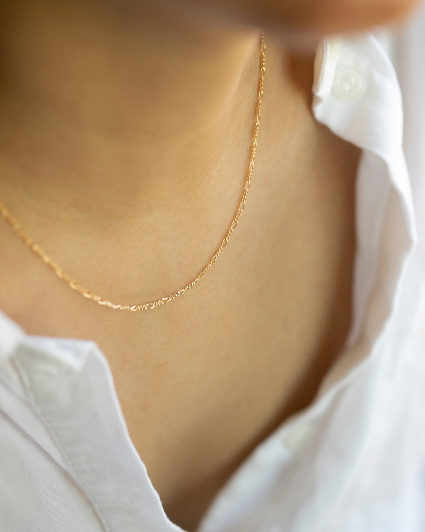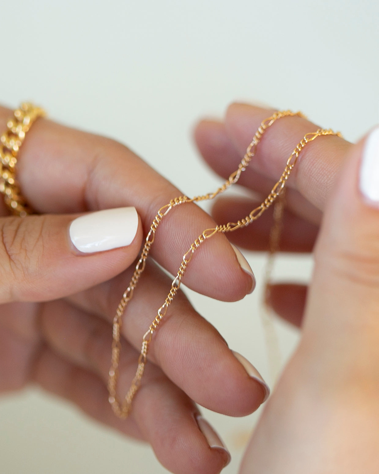 Elevate your everyday look with our Dainty Figaro Chain Necklace - the perfect piece for creating layered or personalized styles. Add a touch of dreamy texture to your stack or wear it alone for a classic and versatile look.