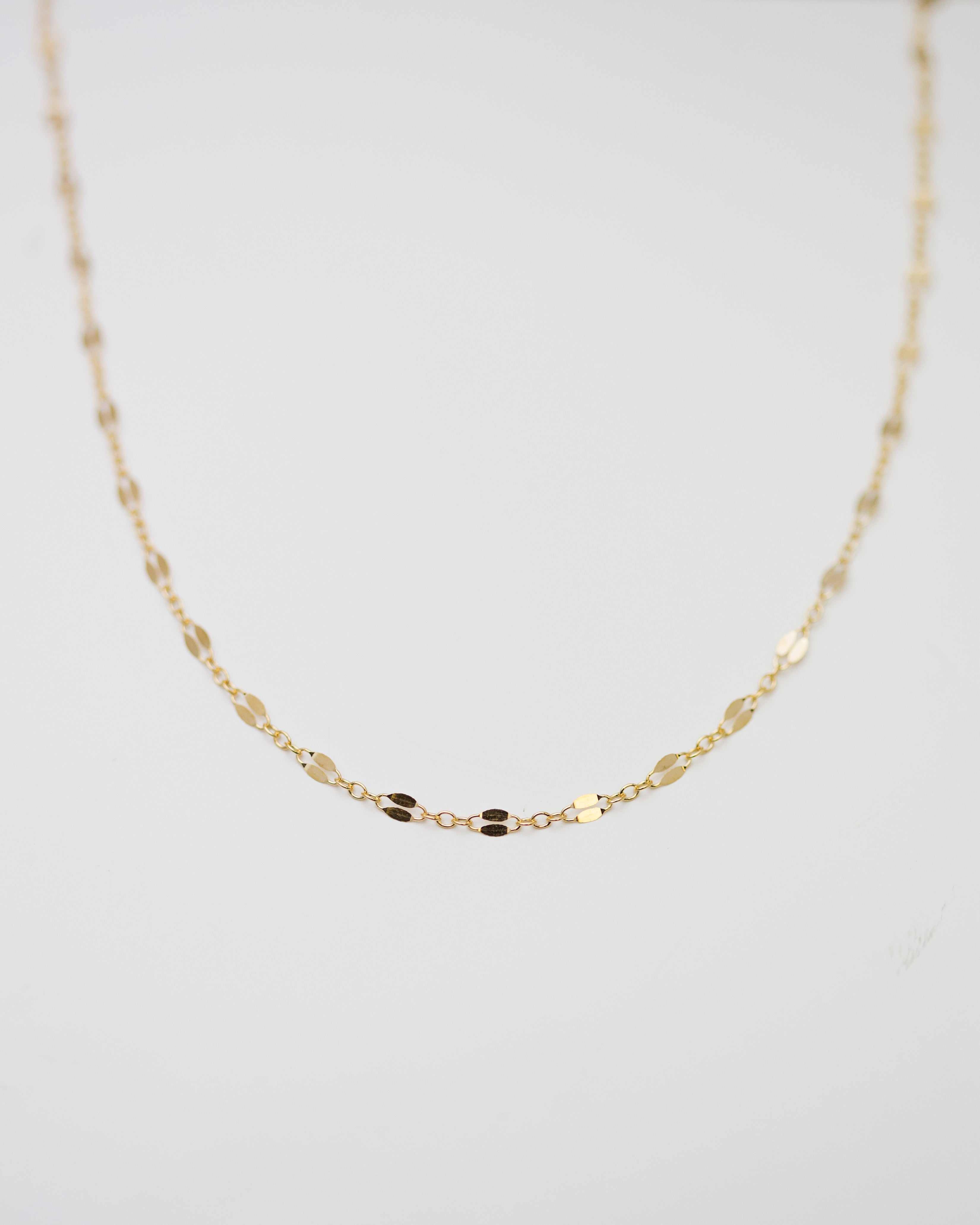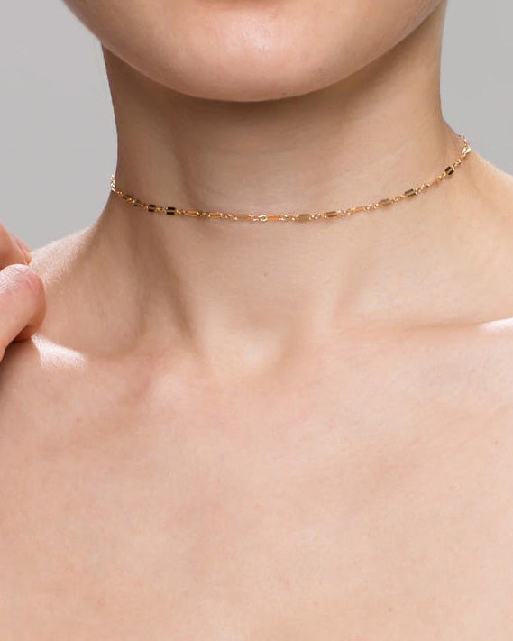 Gold Shinny Lace Choker Necklace Shine with subtle elegance. This 14k gold filled dapped chain necklace is the perfect blend of timeless charm and modern minimalism. Featuring a delicate shimmering texture that catches the light beautifully, this lightweight chain is ideal for layering or wearing solo for an effortlessly chic look.