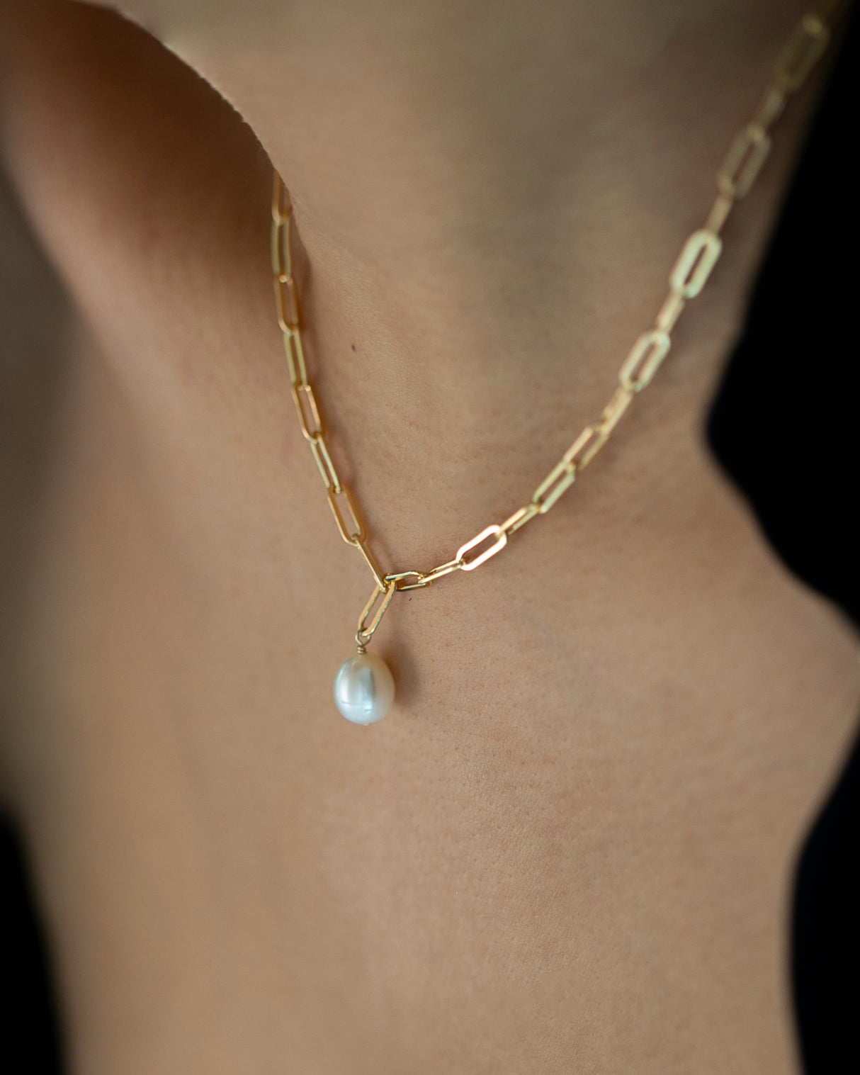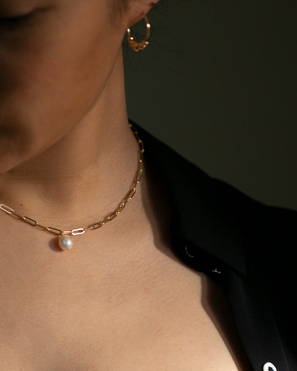 💎 DETAILS • Materials: 14k Gold Filled chain & findings • Pearl: Natural freshwater pearl (10–12mm) • Chain Style: Paperclip link chain • Length Options: 16", 18", or custom lengths • Closure: Spring ring clasp • Hypoallergenic & water-resistant