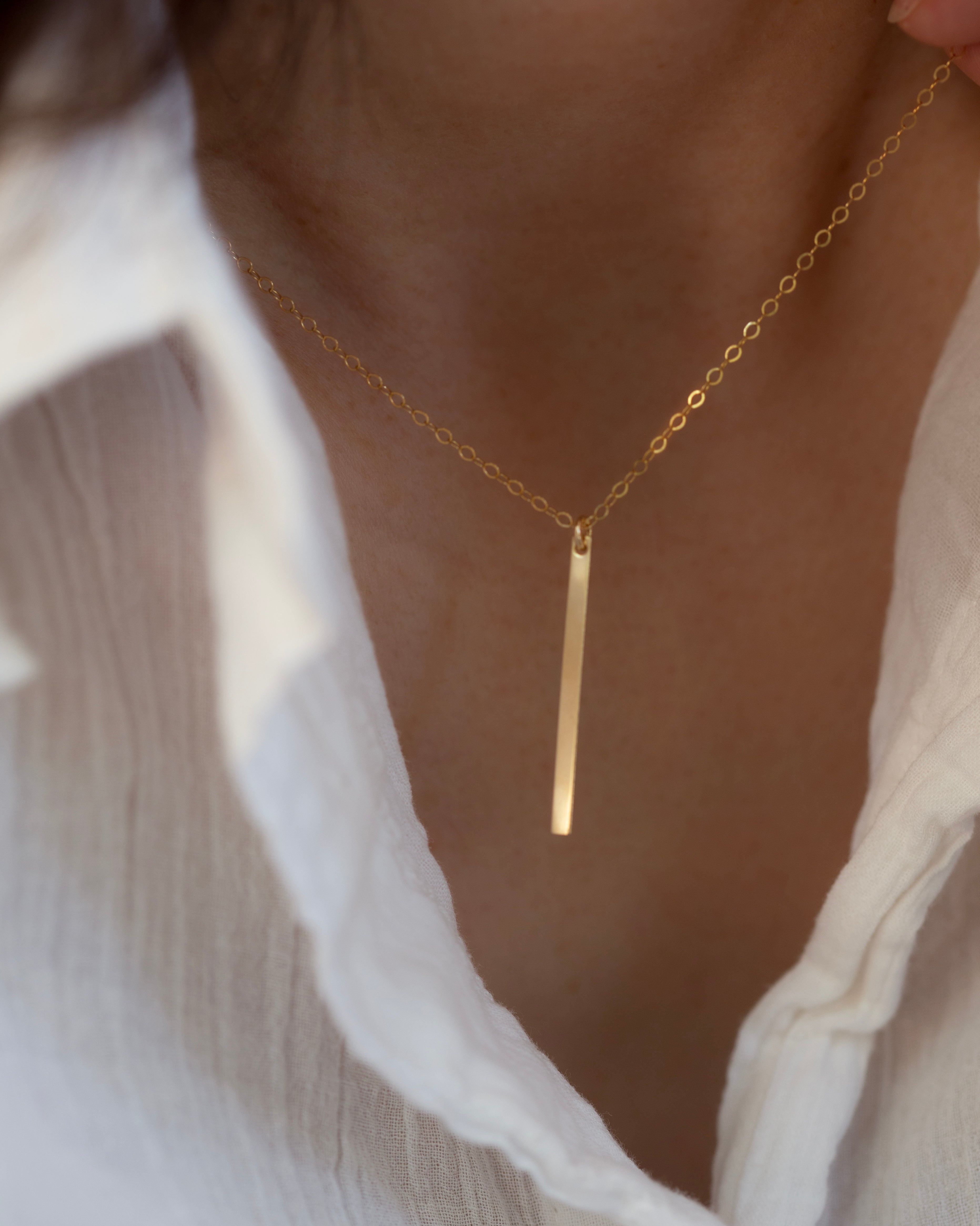 I love this necklace. Paired it with a few others for an incredible layered look. It is simple and sleek, but reflects light in a way that it really stands out. Shipping was fast and the best price for similar necklaces around.