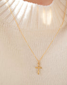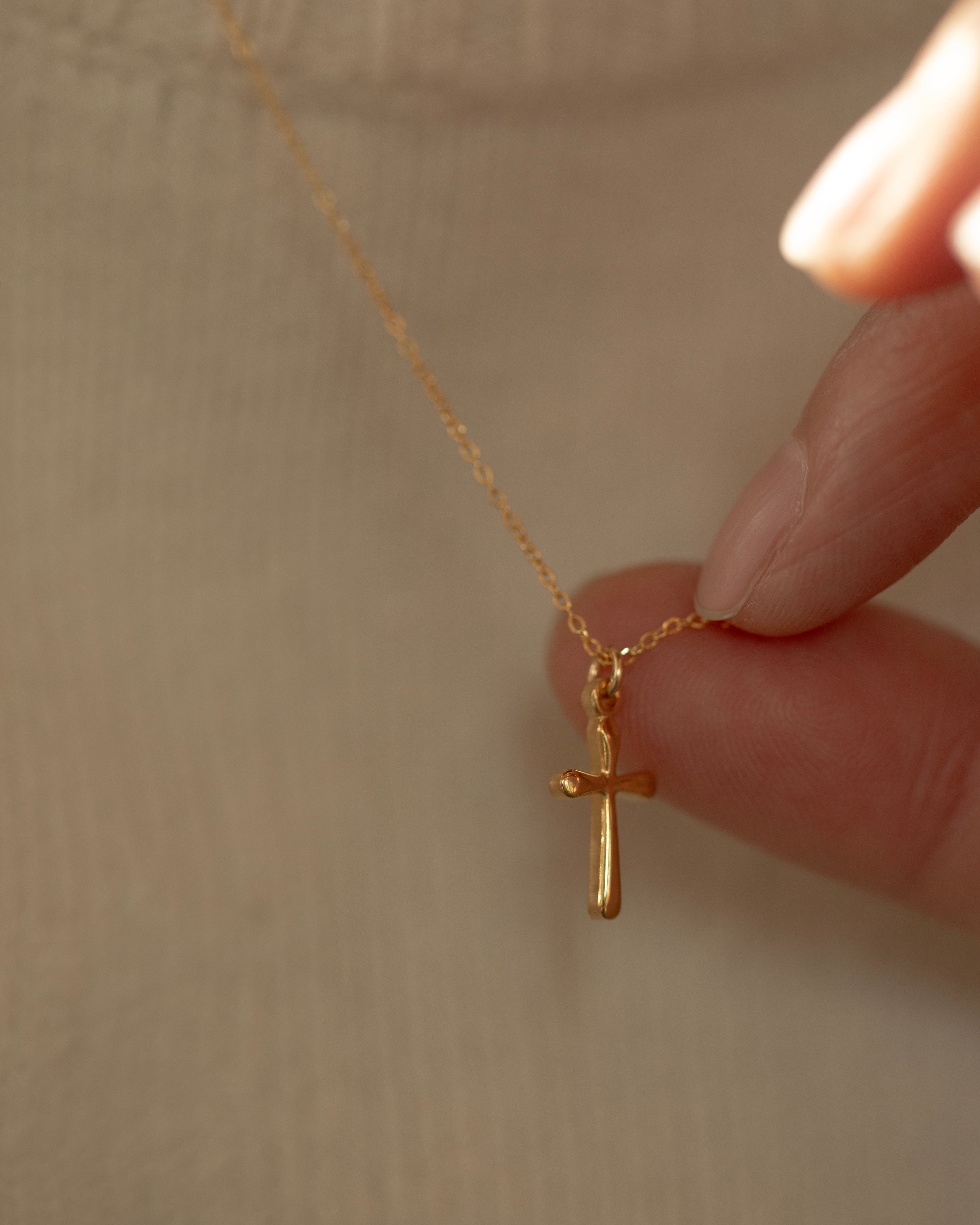 This elegant cross necklace is expertly crafted with gold filling, making it a perfect addition to any jewelry collection. Its simple design adds a touch of sophistication to any outfit. Whether it's a gift for someone special or a treat for yourself, this dainty cross necklace is a must-have for women of all ages.