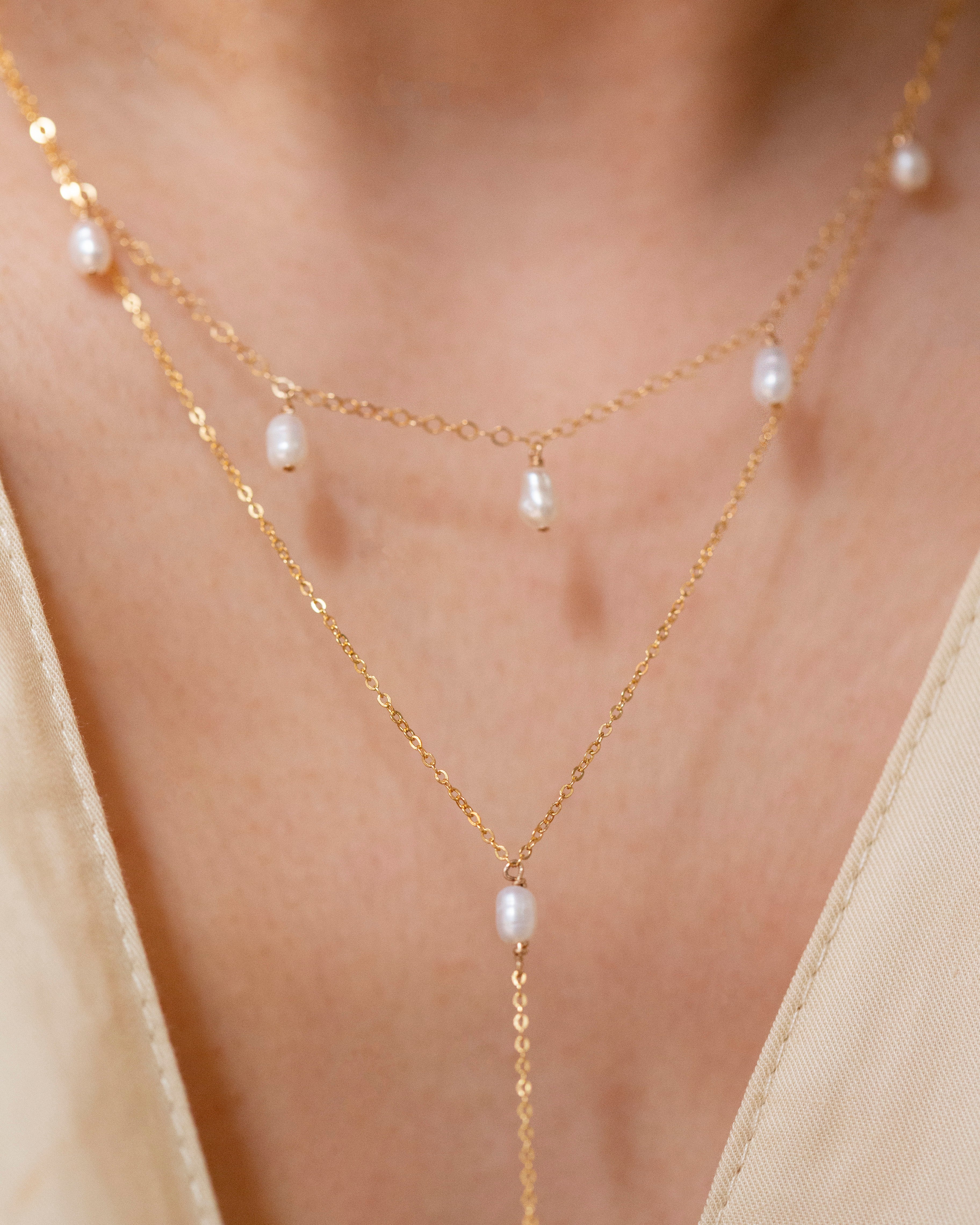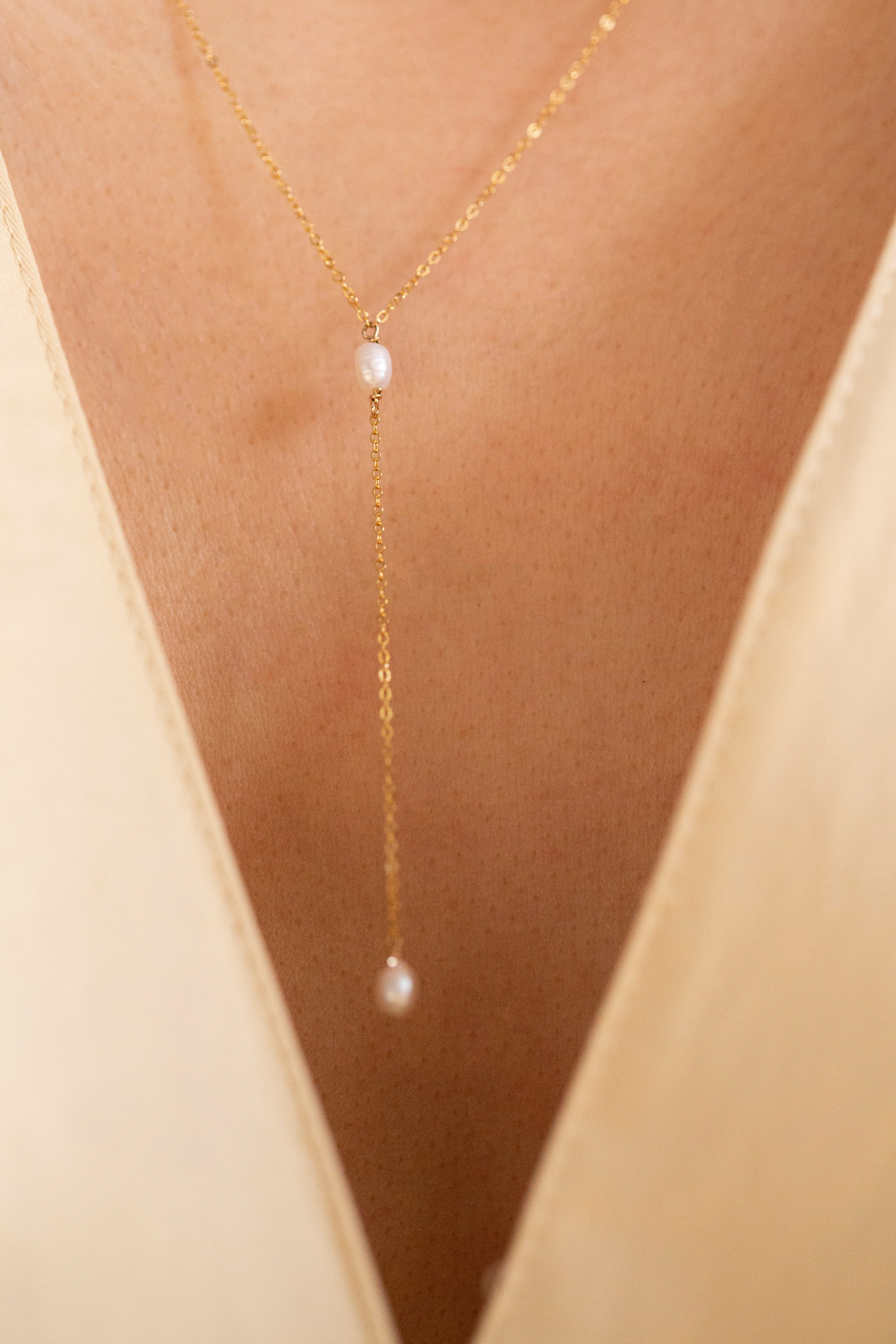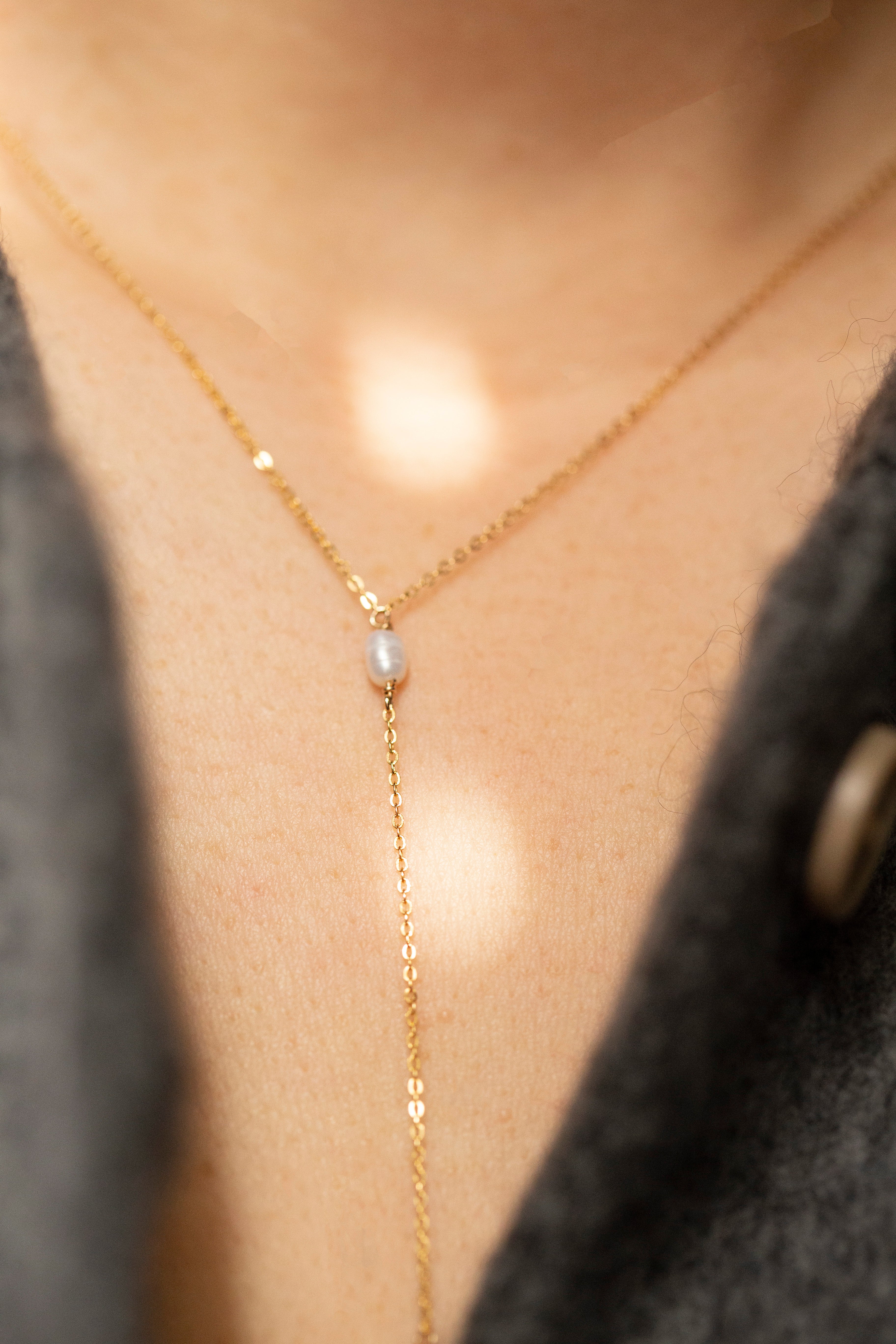 Pearl Lariat Necklace | 14K Gold Freshwater Pearl Necklace